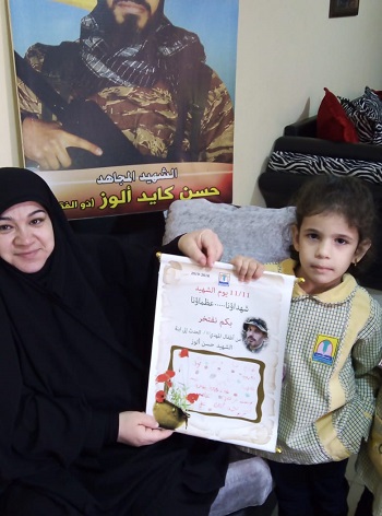 الشكر كل الشكر للشهداءوفي يوم الشهيد، لهم براعم الشهداء منا كل الحب والعطف والحنان، كل الشكر للشهداء ولعوائل الشهداء في عيدهم، ففي هذه المناسبة استكمل قسم الروضات في ثانوية المهدي (ع)- الحدث زيارته الى منازل عوائل الشهداء، حيث تمت زيارة منزل الشهيد حسن ألوز وقد قدم رفاق الصف تذكاراً لإبنة الشهيد تعبيراً لهم عن الحب والعهد والصدق والوفاء.