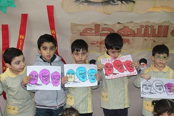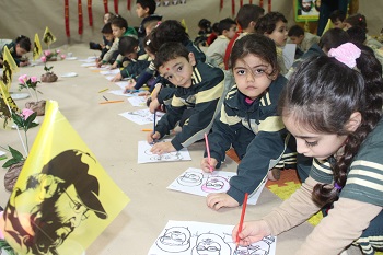 تحت عنوان "ألوانهم تحكي مقاومة، وبمناسبة ذكرى الشهداء القادة 16 شباط ، شارك 600 طفل في قسم الروضات في ثانوية المهدي (ع) –الحدث برسم وتلوين بطاقات خاصة بالمناسبة وبالمشاركة مع جمعية قاف الخاصة بتخليد ذكرى الشهيد القائد الحاج عماد مغنية، تم توزيع دفاتر رسم ورايات مزينة بصورة الشهيد، حيث قام الأطفال برسومات تعبيرية عن ما يملكون من مخزون من المشاعر للشهيد المقاوم .
