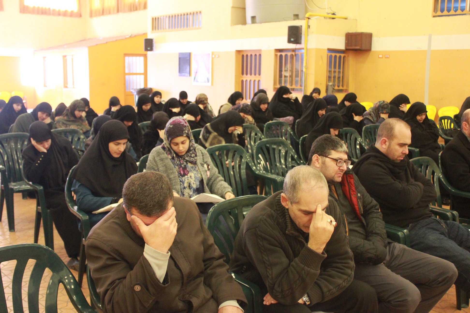 بهذه الكلمات ودع أمير المؤمنين (ع) رفيقة دربه وجهاده السيدة الزهراء (ع) وبالدموع والآهات ودع معلمو ومعلمات مدرسة المهدي (ع)- المجادل بضعة رسول الله (ص) في مجلس عزاء احياه سماحة المرشد الديني في ذكری شهادة الصديقة الطاهرة (ع).