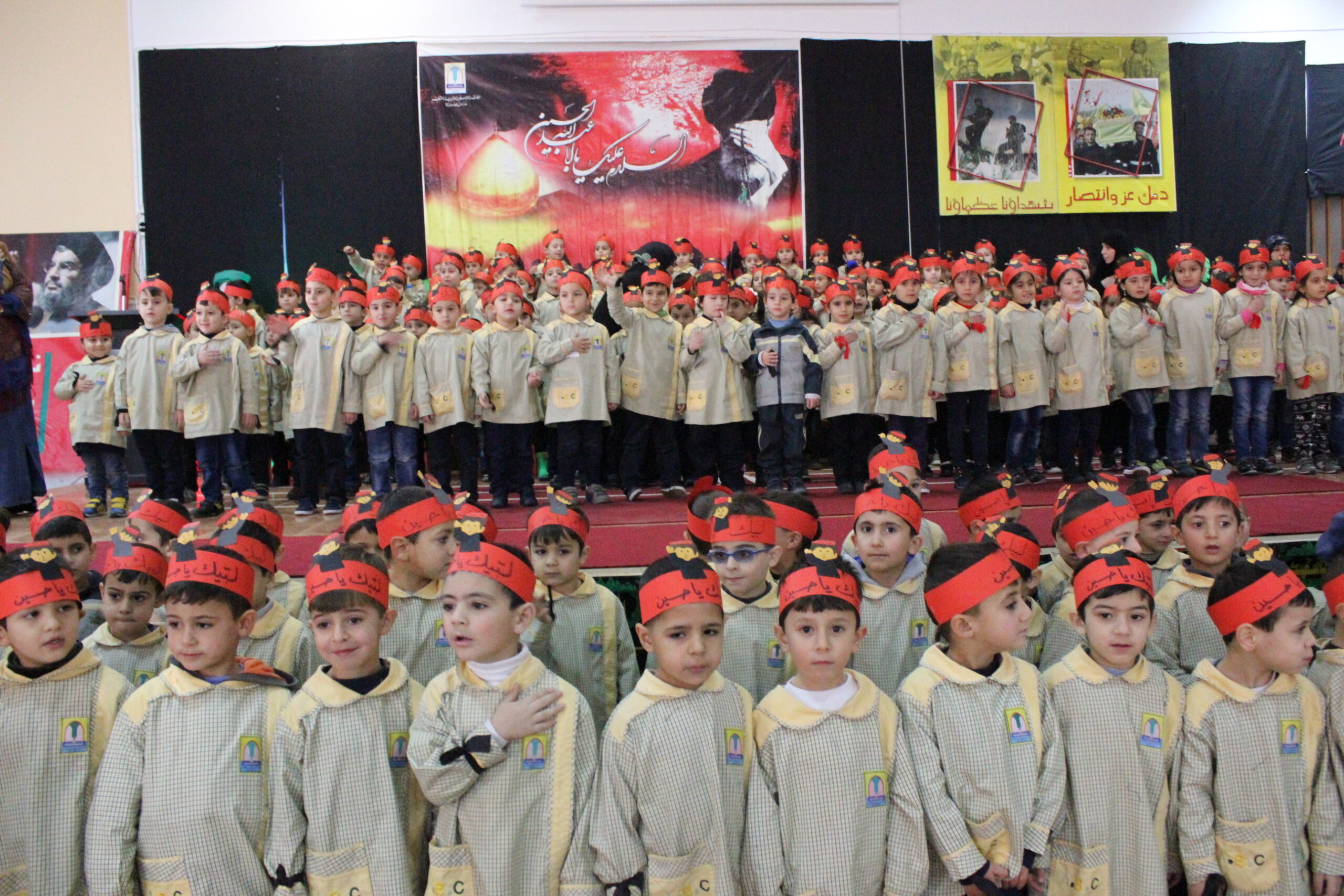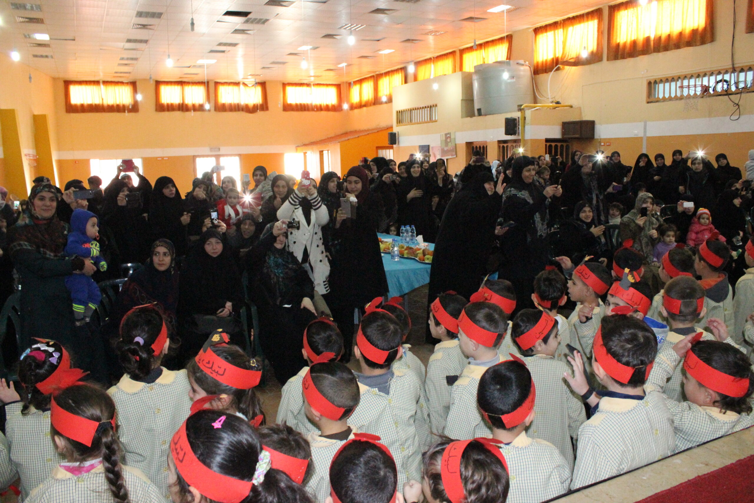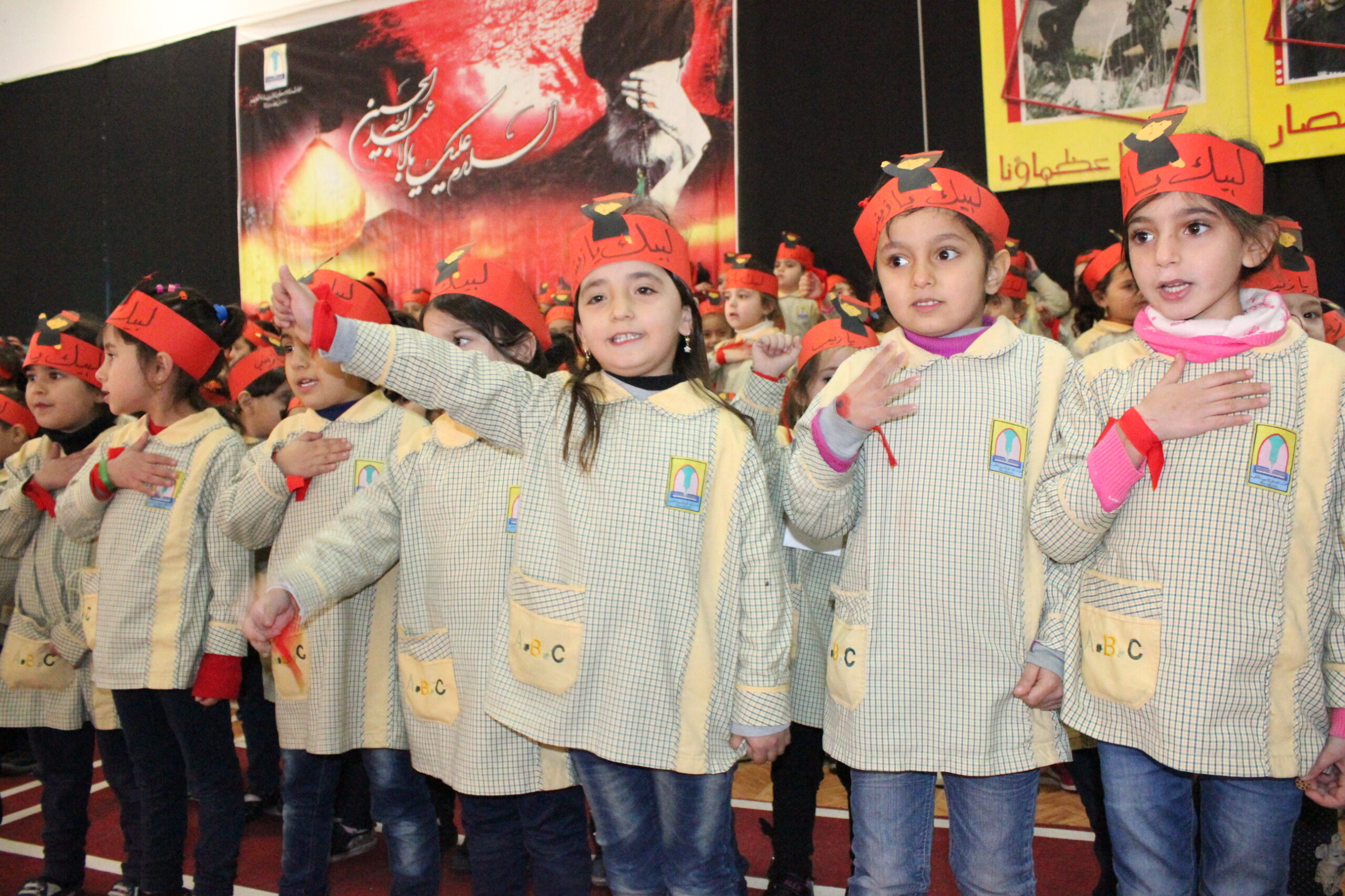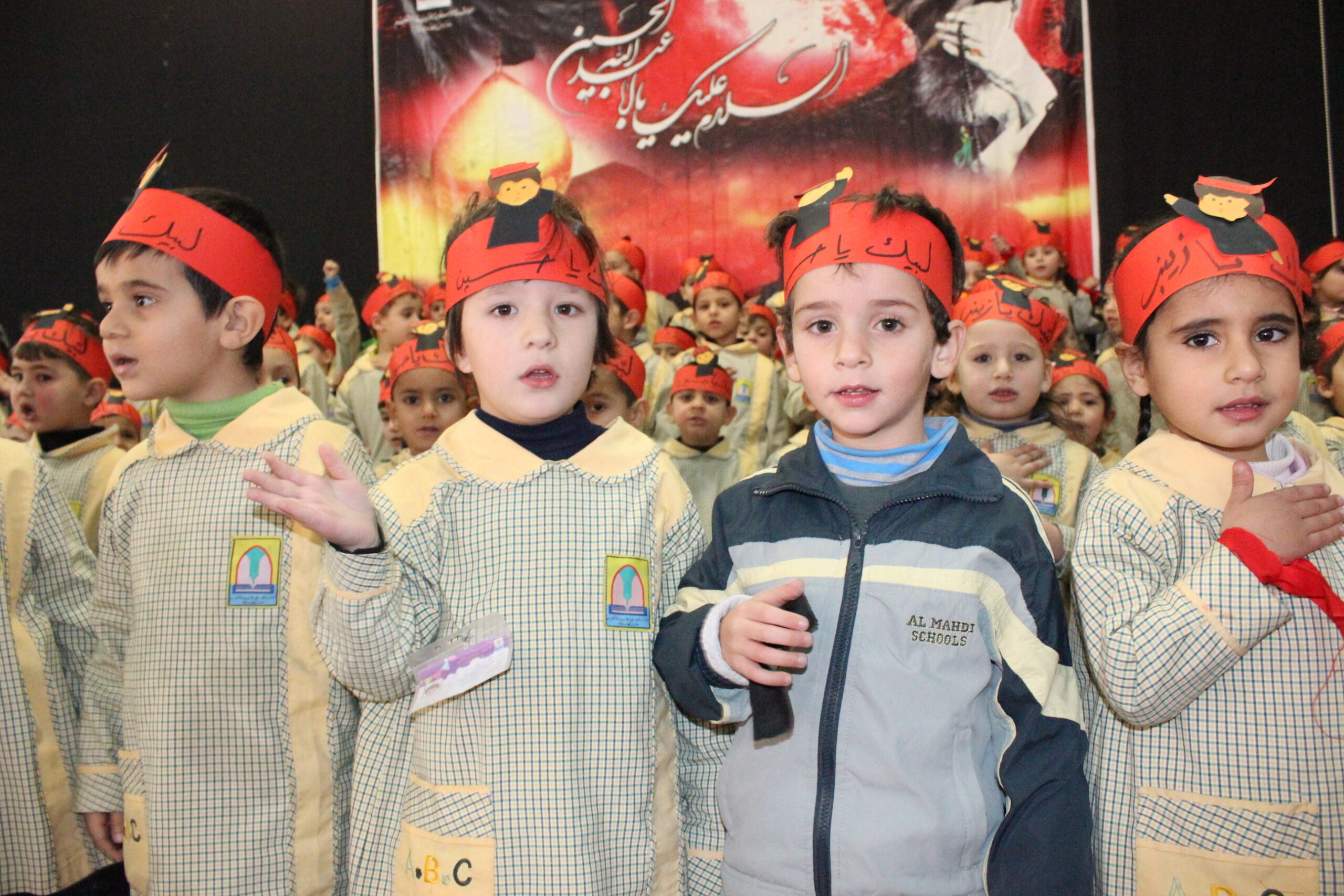 لبراعم الروضات في مدرسة المهدي(ع) المجادل عشق وحب لا ينتهي للإمام الحسين(ع) وللإمام علي بن أبي طالب(ع)،وبصوت عالٍ وبصرخات لبيك يا حسين..لبيك يا علي..كانت الأناشيد العاشورائية حاضرة في نفوس براعمنا وبصوتهم يرددون أنشودة لعلي أنتمي..حبه في دمي،وتفاعل أولياء الأمور مع أصوات الصغار متأثرين بمشهدية عاشورائية عنوانها الحب والولاء للحسين(ع) الشهيد، وفي الختام كانت زيارة الإمام الحسين(ع) ودعاء الحجة والصلوات.