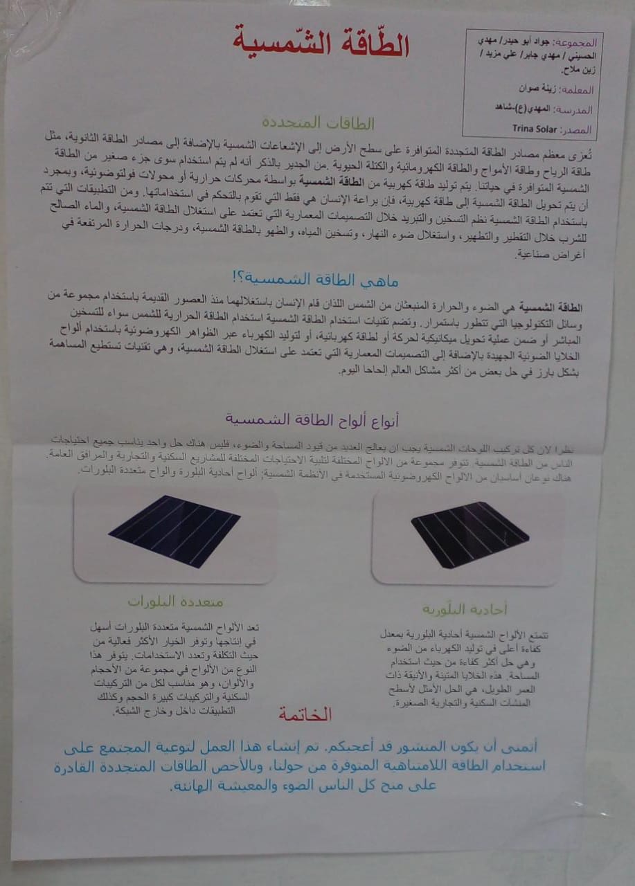 في إطار سلسلة استراتيجيات التّعلّم النّشط وضمن درس" الدّورة المائية وتلوّث المياه " نفّذت معلّمة الجغرافيا للصّف السابع الأخت زينة صوّان خلال الأسبوع الثاني من كانون الثاني استراتيجيّة "التّعلم التّعاوني" والّتي اعتمدت على التّعاون بين المتعلّمين لتحقيق أهداف الدّرس في جوّ من المتّعة والتّشويق