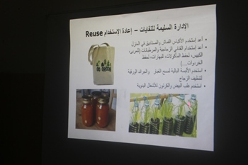 فتمّ تعريفهم بأنواع النفايات وكيفية فرزها ومن ثم كيفية إعادة تدوير النفايات الصلبة للأفضل، وقد تمّ وضع خطة مع التلامذة لفرز النفايات الصلبة وإرسالها الى المدرسة لإعادة تدويرها للأفضل في نادي الأشغال الفنية وحصص التربية الفنيّة. كما تمّ إطلاق مسابقة فنيّة للتلامذة بإعادة تدوير النفايات الصلبة الى مشاريع فنية.