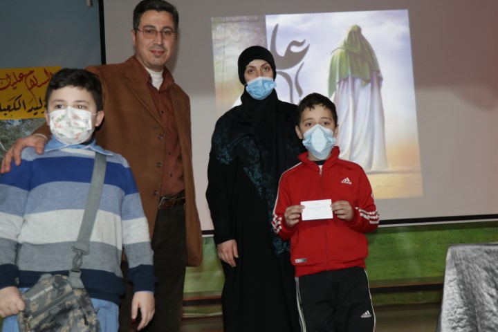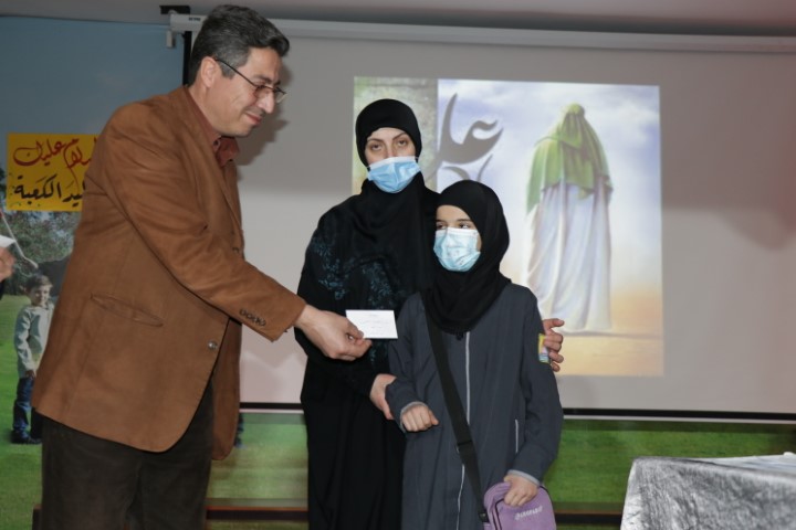 ومسابقة ثقافية عرض فيديوهات عن ولادة الامام علي (ع) وفضائله ومدائح نبوية واختتم الحفل بتوزيع هدايا مالية على الفائزين في حفظ جزئي عم وتبارك.