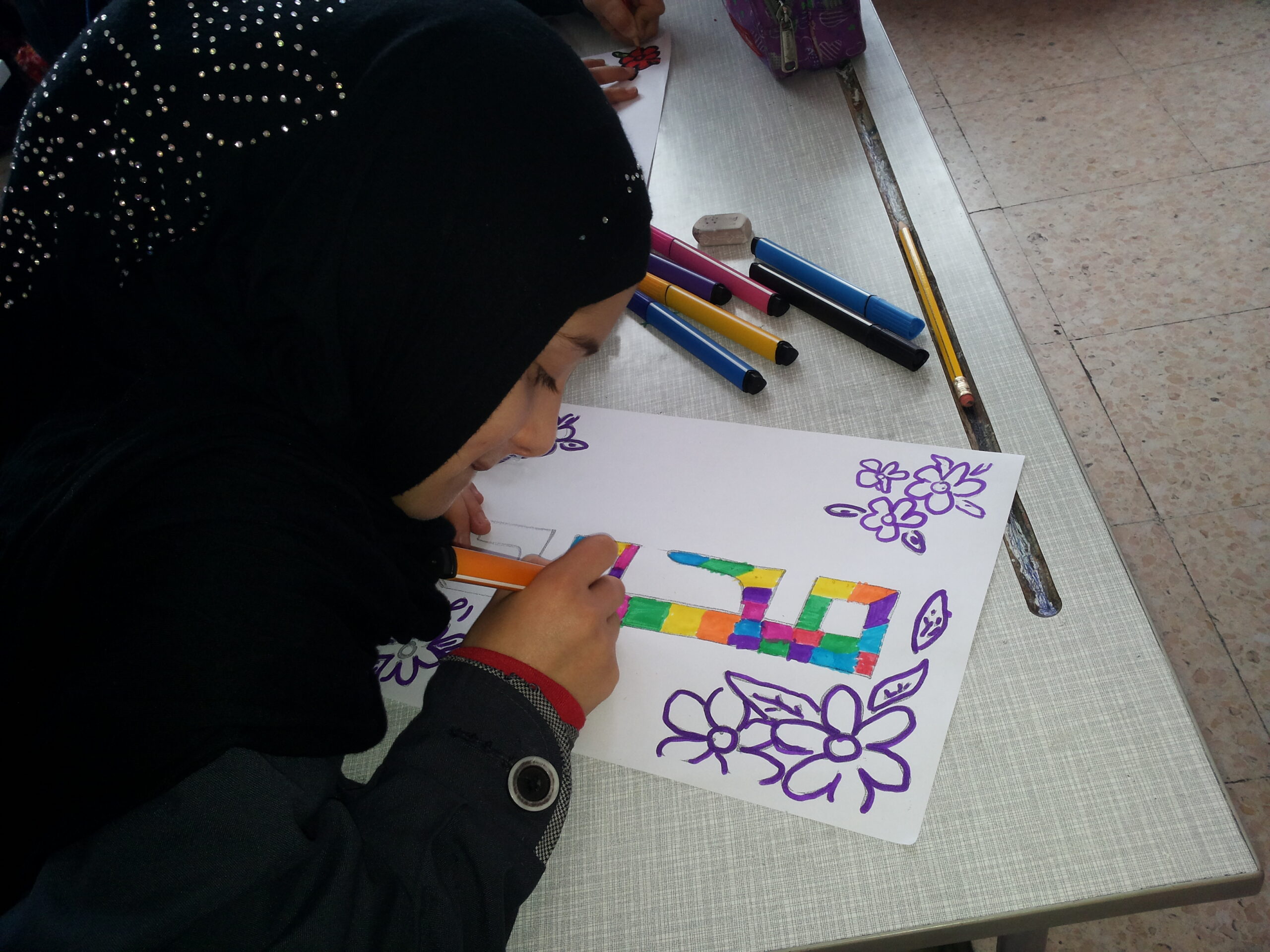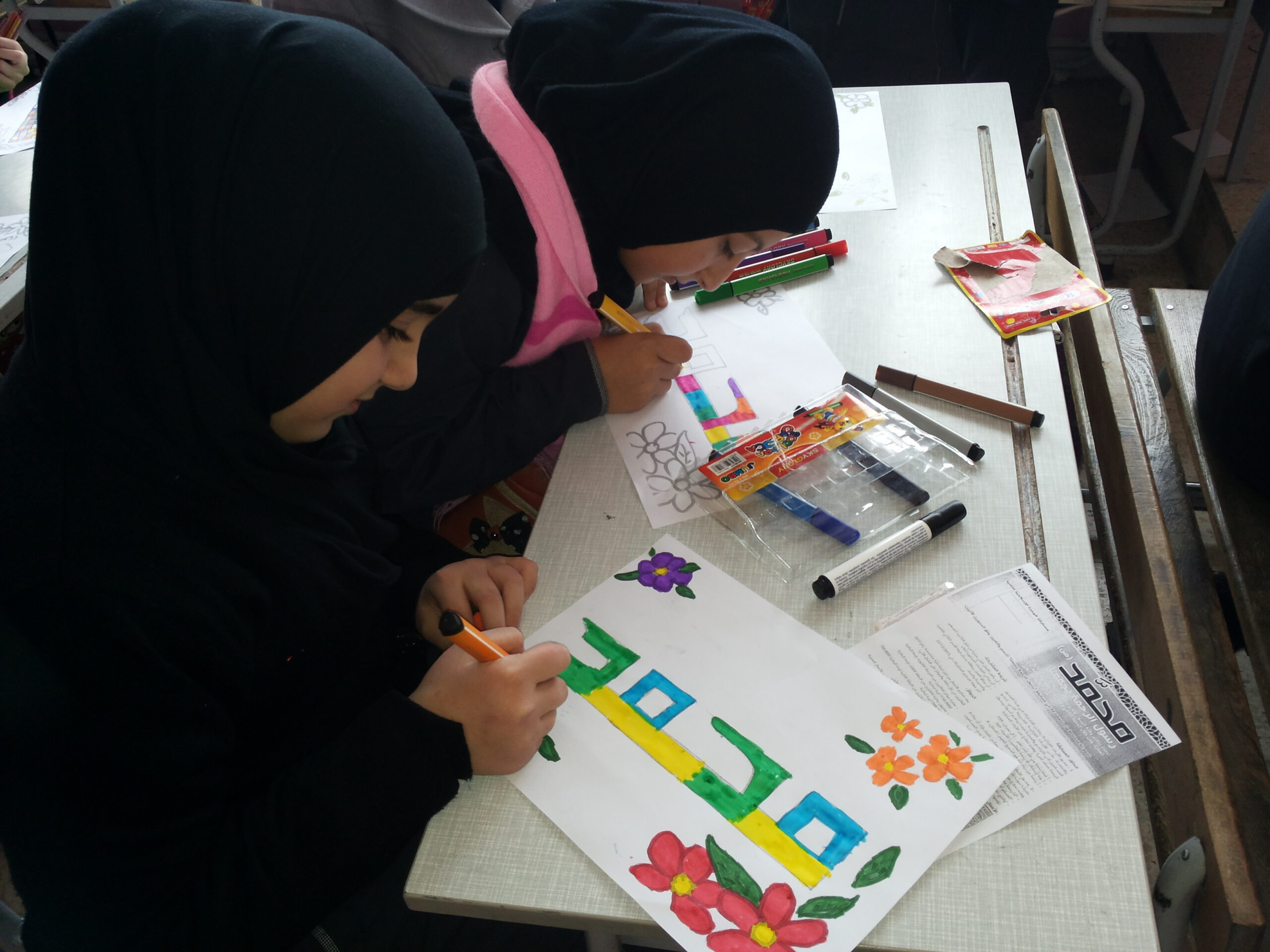 المشاركة في أجواء ولادة رسول البشرية محمد(ص) رسم تلامذة مدرسة المهدي(ع) المجادل كلمة محمد(ص)، بأناملهم البريئة بأجواء من الفرح والسرور بهذه المناسبة المباركة مستخدمين التلوين والزخرفة. أخبار مستوى ثانيأخبار مستوى ثاني - المجادل