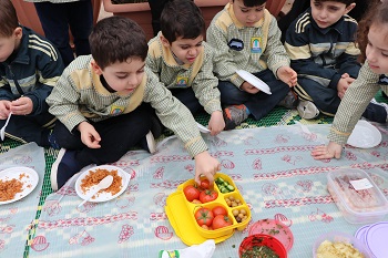 نظم قسم الروضات في ثانوية المهدي (ع) –الحدث لصفوف الروضة الثانية نشاط تعليمي لاصفي عن فوائد الطعام البلدي لجسم الإنسان وقد استمع الأطفال الى قصص الجدة عن الطعام المفيد والمغذي لنمو الجسم وفي نهاية النشاط تذوقوا مأكولات الجدة البلدية .