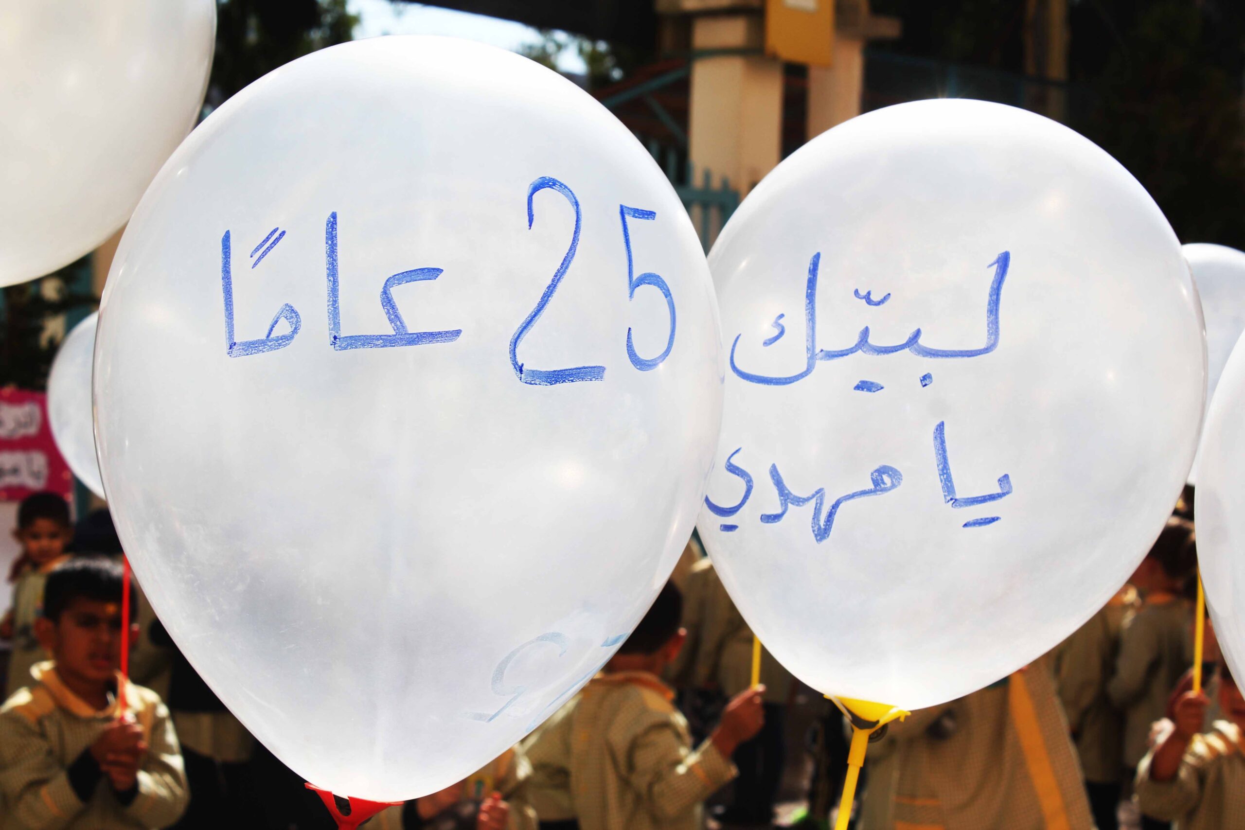 فقد شارك الأطفال بكلّ حماس وحب فقاموا باطلاق بالونات فضيّة وأكدوا ولاءهم للإمام بتبصيم وتزيين العدد " 25 " رمزًا للمناسبة.