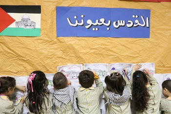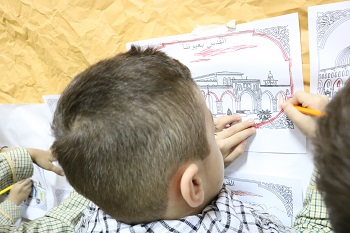 من محترف القدس الذي تضمن أنشطة حول قضيتنا الأساس (فلسطين)، وتأكيداً على أن القدس عاصمتها الأبدية… ، قام أطفال ثانوية المهدي (ع) – الحدث في قسم الروضات بالتعبير عن حبهم للقدس، حيث رسموا، ولونوا، وعبروا بأناملهم البريئة صدقهم وحبهم للقدس، كما صدحت حناجرهم بالهتافات: (الموت لاسرائيل) .