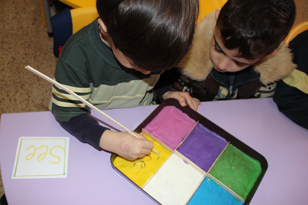 الكتابة على المعجون لتلامذة الروضة الثالثة