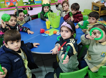 المشاركة ضمن سلسلة الأنشطة اللاصفية التعليمية في قسم الروضات وتحت عنوان "التعلم من خلال اللعب" نفذت وحدة اللغة العربية نشاط فني التعرف على اللون الأخضر من خلال مشاركة الأطفال في تنفيذ عدة ألعاب تربوية منها: التصنيف – التطبيع – مزج الألوان. أخبار مستوى ثانيأخبار مستوى ثاني - الحدثنشاط تعليمي