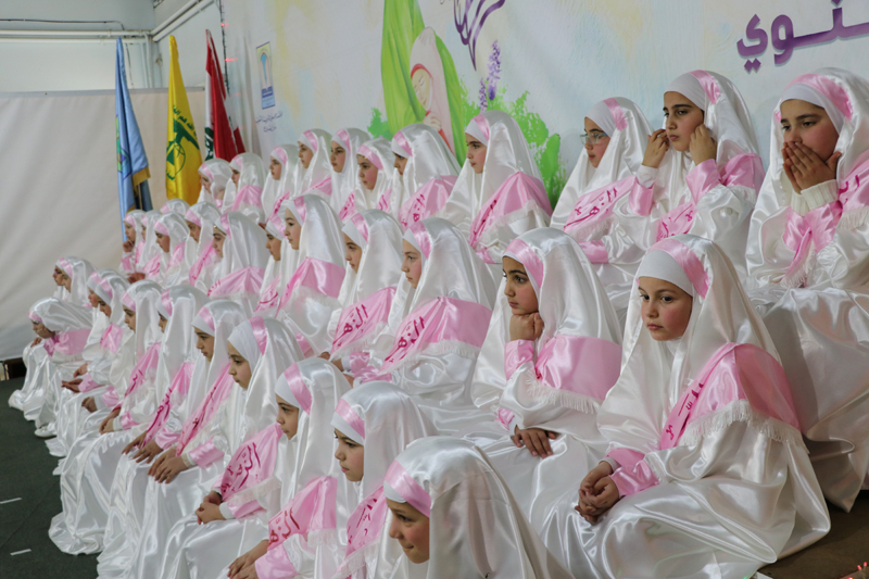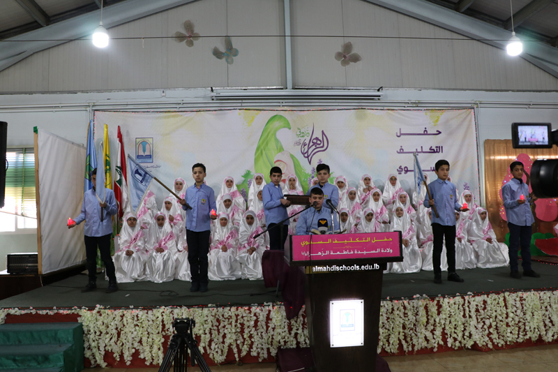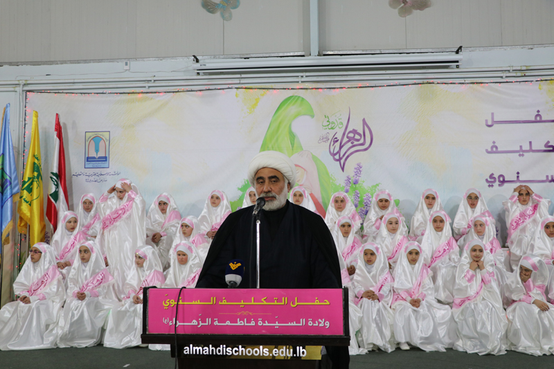 استهل الحفل بدخول الفتيات المكلفات ثم النشيد الوطني اللبناني ونشيد حزب الله تلى ذلك فقرة تعظيم القرآن الكريم قدمتها مجموعة من التلامذة وآيات بينات من القرآن الكريم تلاها التلميذ أحمد الموسوي ، بعد ذلك كلمة باسم المكلفات ألقتها التلميذة بتول هزيمة.