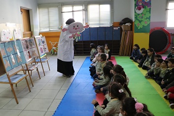تعزيزاً لمفهوم النظافة الشخصية والعادات الصحية لدى الأطفال، نظمت ثانوية المهدي (ع) الحدث في قسم الروضات نشاطاً تعليمياً تحت عنوان العادات الصحية بالتعاون مع المشرفة الصحية الأخت نور حب الله حيث قدمت شروحات عن النظافة الشخصية "نظافة الأسنان والجسم ….." وعن أهمية تناول الأطعمة الصحية وفي نهاية النشاط قام الأطفال بتصنيف الأطعمة الصحية وغير الصحية.