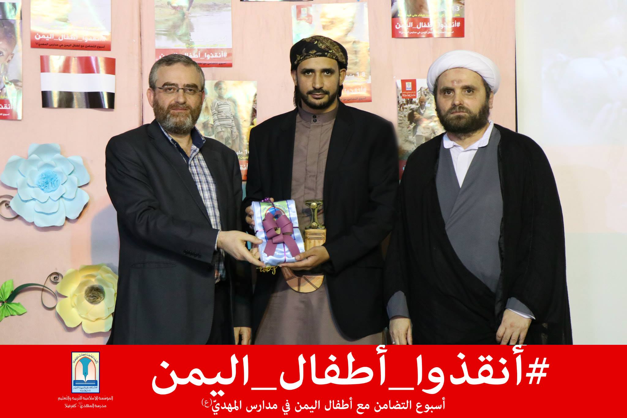 ختامًا قدّم مدير المدرسة الأستاذ محمد طفيلي والمرشد الديني الشيخ قاسم كركي هدية رمزيّة لرئيس الملتقى اللّبناني اليمني لمناهضة العدوان على اليمن السيّد أحمد عبد الملك الشامي، شاكرين له حضوره ومشاركته.