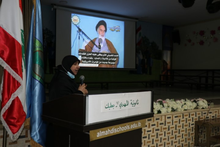 بمناسبة إنتصار الثورة الاسلامية في إيران أقامت ثانوية المهدي (ع) بعلبك قسم الارشاد الديني مسابقة ثقافية عن حياة الامام الخميني (قدس سره) وعرضت الأخت المربية هدى حمزة فيلم وثائقي بعنوان روح الله وشرحت للتلامذة في الحلقة الثالثة أسباب ونتائج انتصار الثورة الاسلامية في إيران .