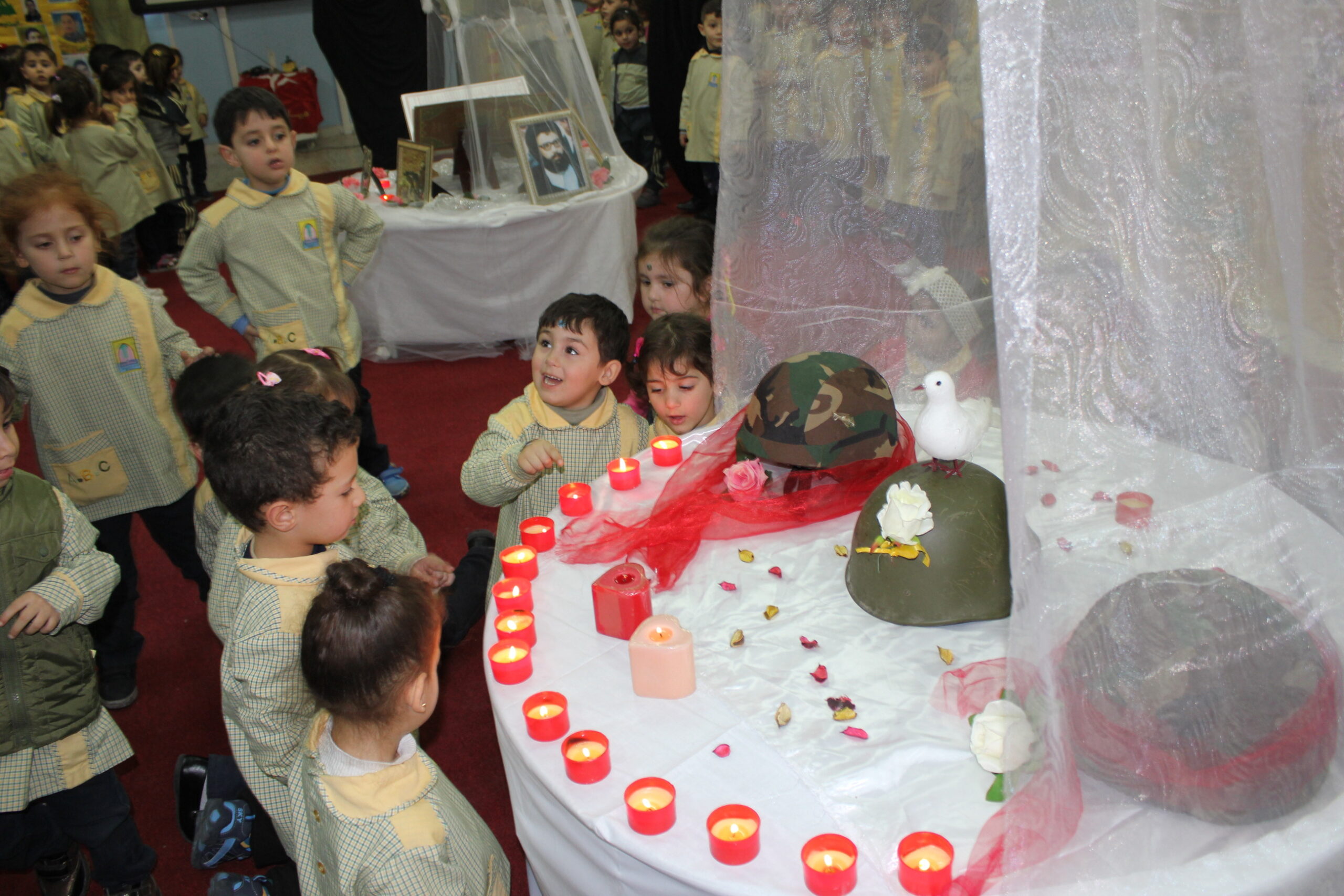 بمناسبة ذكرى الشهداء القادة، كان لبراعم الروضات زيارة لمعرض آثار الشهداء المقام في مدرسة المهدي(ع) المجادل، تعرفوا من خلالها على اغراض الشهداء وصفات كل شهيد وقدموا بشكل جماعي أداء القسم عهداً ووفاءً لدماء الشهداء الأبرار، حاملين صور القادة ورافعين بصوتٍ عالٍ نداء صاحب الزمان الإمام المهدي(ع).