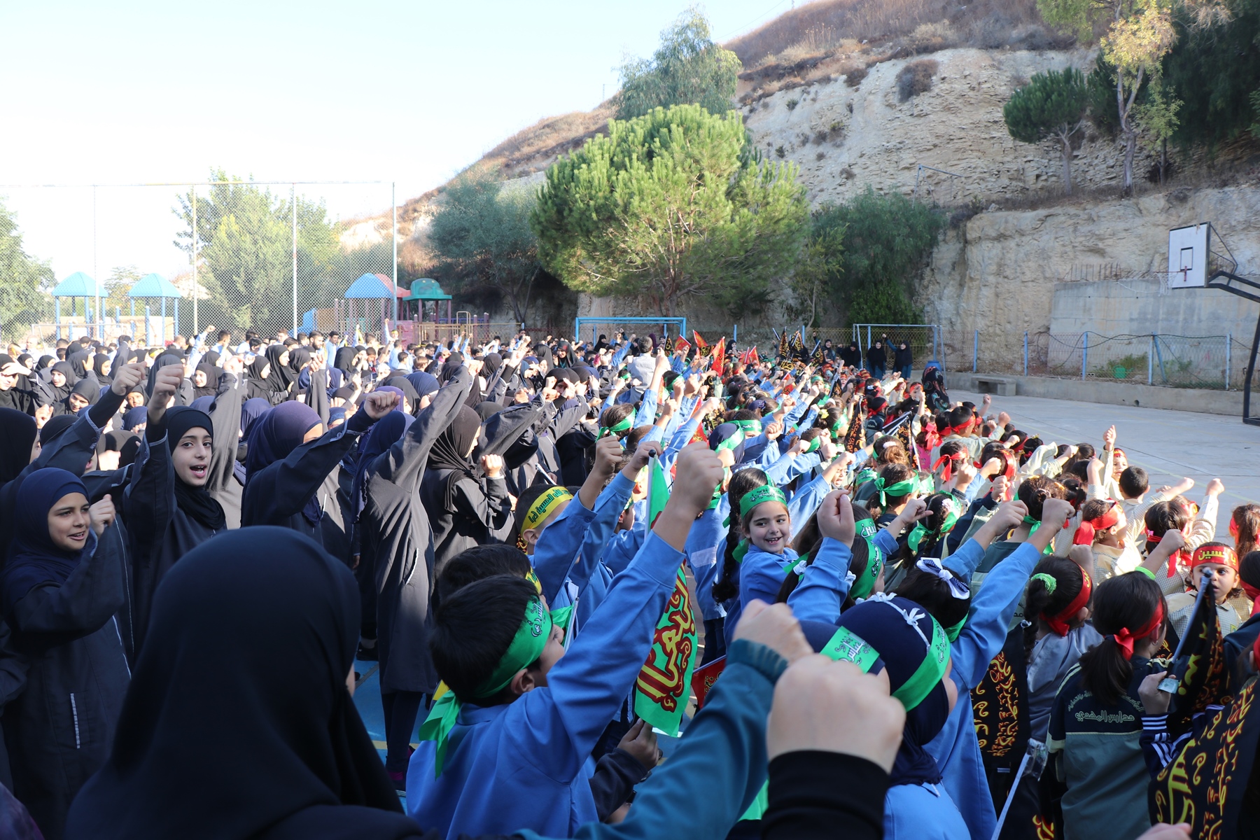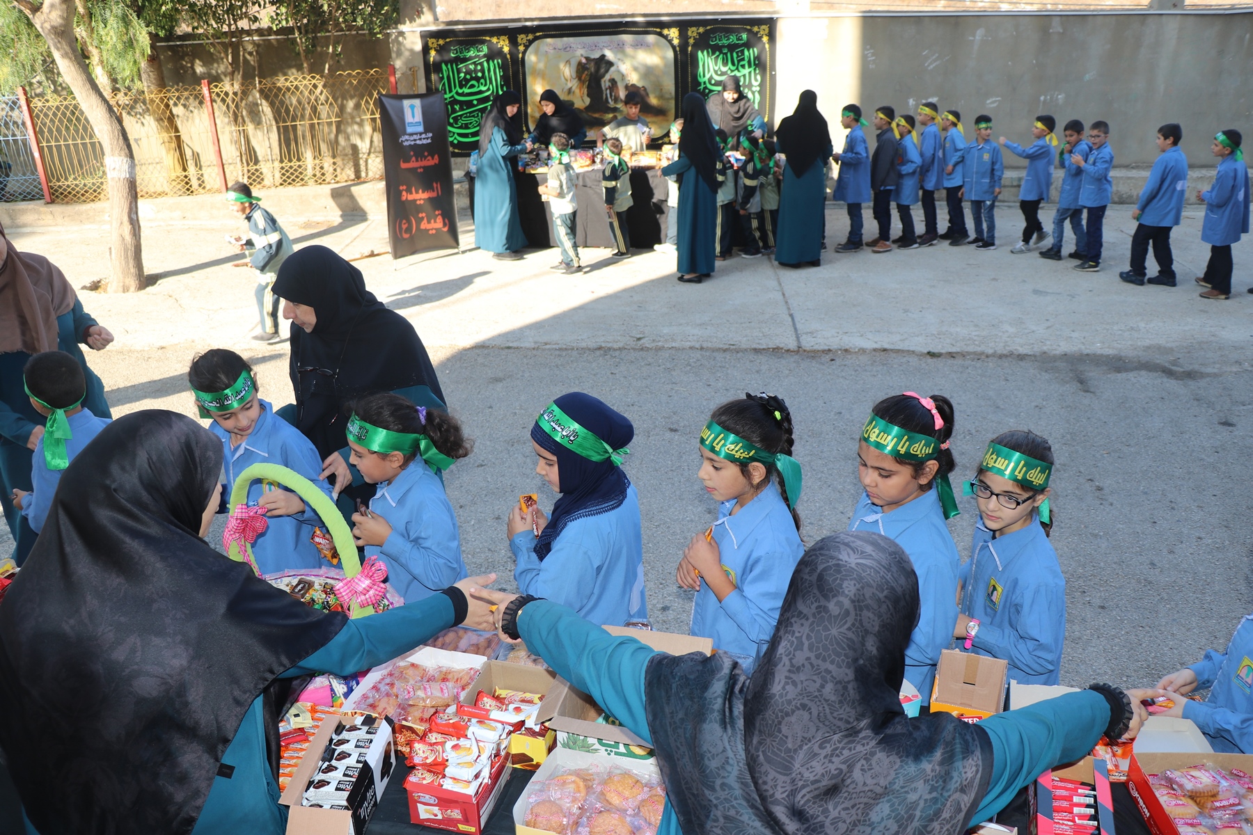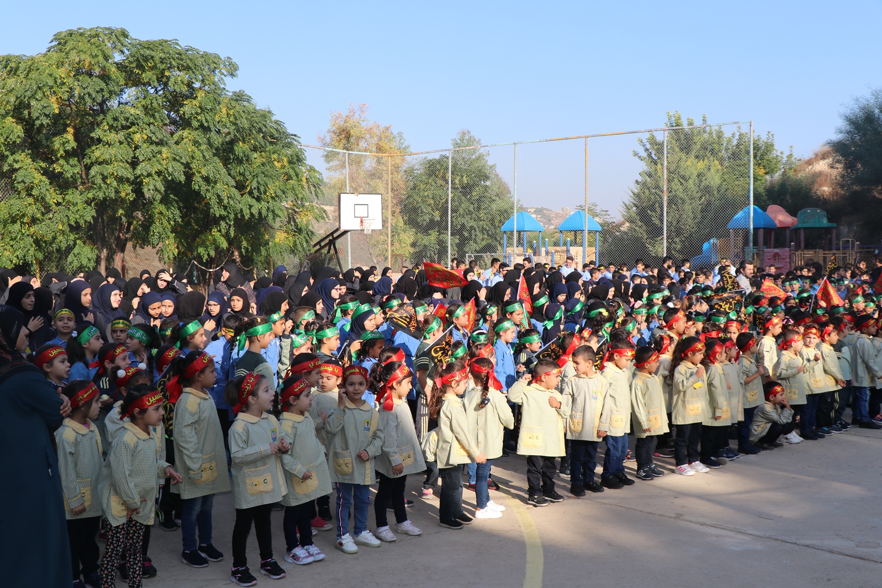 في أجواء ذكرى أربعين الإمام الحسين (ع) و رحيل الرّسول الأكرم محمد (ص)، أحيت مدرسة المهدي (ع) – عين المزراب هذه المناسبة عبر تجمع لجميع تلامذتها وكادرها في الملعب الخارجي حيث شاركوا في مجلس لطم حسينيّ رافعين الرّايات الحسينيّة هاتفين بالتلبية لأبي عبد الله الحسين (ع)، ثم مسيرة داخل المدرسة اختتمت بمضيف السيّدة رقيّة (ع) الذي تشارك فيه التلامذة مساهماتهم من أطعمة وحلوى على حب السيدة رقية وآل البيت عليهم السلام.