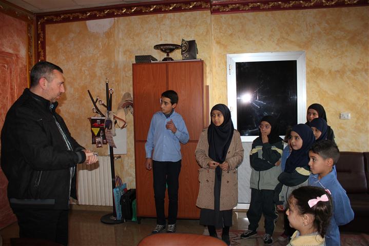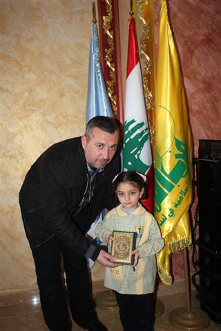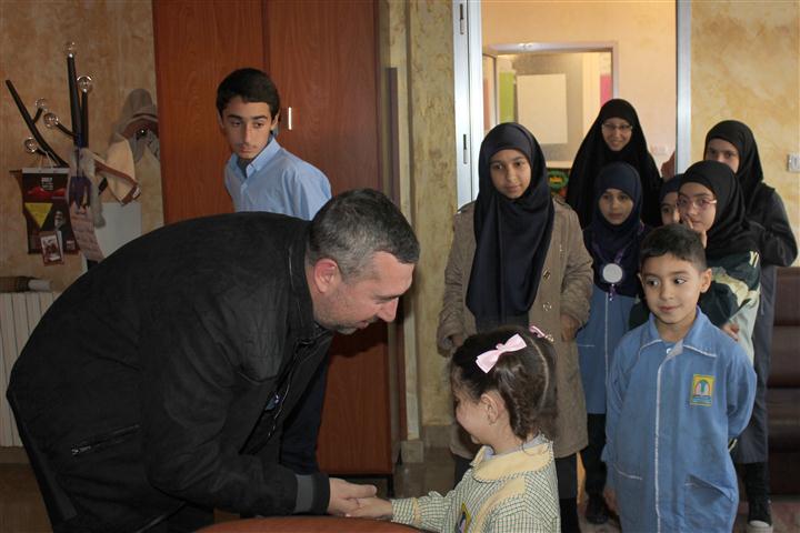 كرم مدير مدرسة المهدي(ع)-النبي شيث التلامذة أبناء الشهداء من خلال استقبالهم في مكتبه حيث تحدث إليهم عن عظمة العطاء الذي قدمه آباءهم الشهداء كما ووزع عليهم نسخا من القرآن الكريم موضوع في داخل غلافها صوراً للآباء الشهداء واختتم اللقاء بالتقاط صورة تذكارية معهم .