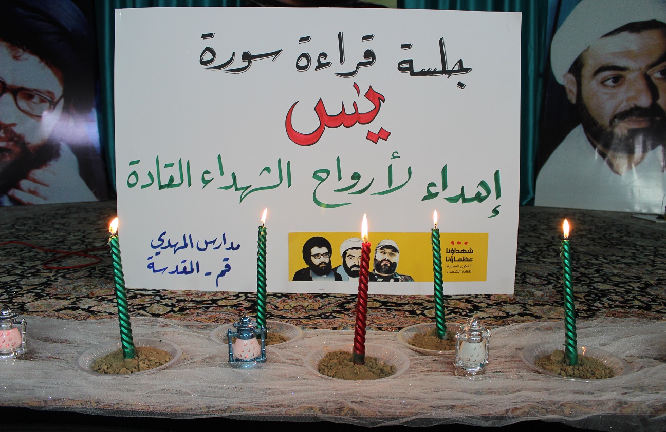 المشاركة إجلالا لذكرى الشهداء القادة العطرة عقدت مدارس المهدي(ع)-قم جلسة قرآنية خاصة بتلميذات الحلقة الثانية لتلاوة سورة يس المباركة وإهداء ثوابها إلى أرواحهم الطاهرة. د أخبار مستوى ثانيأخبار مستوى ثاني - قممناسبة