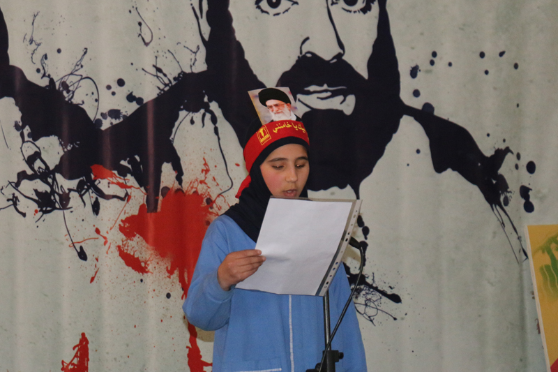 إحياء لأسبوع المقاومة الإسلامية وذكرى الشهداء القادة وتحت شعار حفظنا الوصية أقامت مدرسة المهدي(ع)-النبي شيث احتفالا لتلامذة الحلقة الأولى، تخلله كلمة لإبنة الشهيد علي غانم التلميذة يمامة غانم ثم كان لهم لقاء مع أحد المقاومين الذي تحدث إليهم عن إنجازات وتضحيات المقاومين واختتم الحفل بأداء قسم الولاء للسيد الخامنئي.(حفظه الله)
