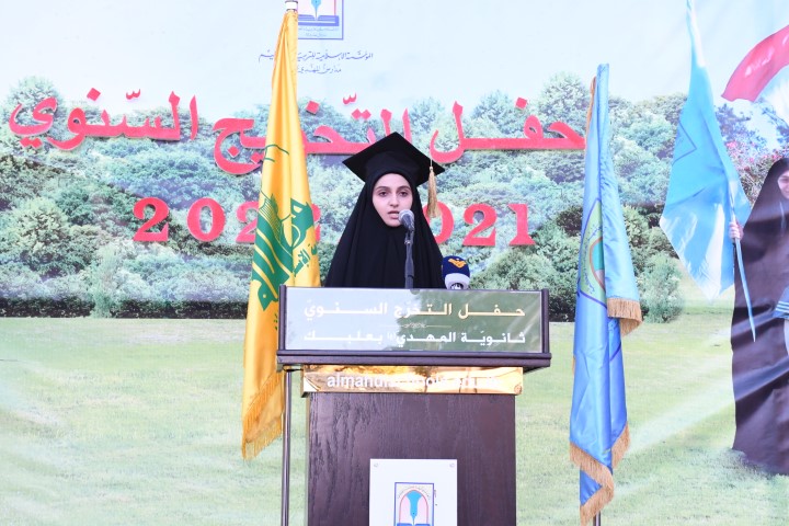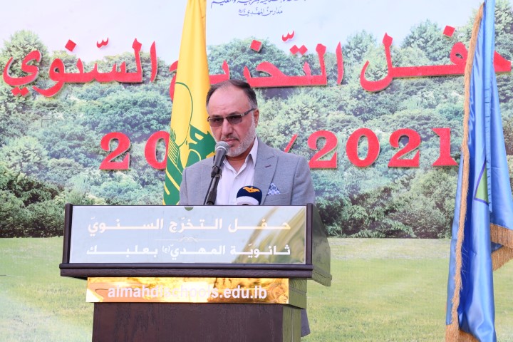 جاء ذلك خلال رعايته حفل تخريج "المؤسسة الإسلامية للتربية والتعليم" 242 طالبا وطالبة نجحوا وتفوقوا في امتحانات الشهادات الرسمية، في "ثانوية المهدي" في بعلبك، بحضور رئيس المنطقة التربوية في محافظة بعلبك الهرمل حسين عبد الساتر، مدير الثانوية حسين المصري، وفاعليات تربوية واجتماعية .استهل الحفل بتلاوة عطرة من القرآن الكريم للقارئ الشيخ هادي دياب ، والنشدين الوطني واللبناني ، بعدها دخول الخريجين وقد أدوا نشيد التخرج وسلام يامهدي أعقبه كلمة الخريجات والتي ألقتها التلميذة المتفوقة العاشرة على لبنان في فرع علوم الحياة
