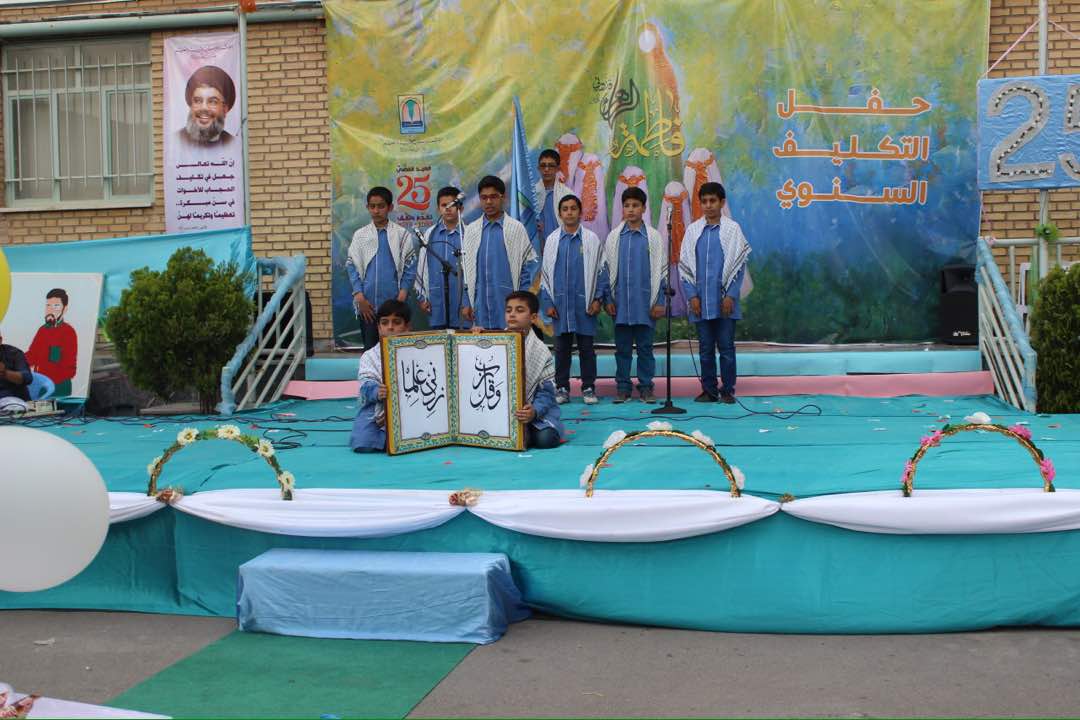 افتتح الحفل بكلمة لمدير المدرسة رحب فيها بالحضور الكريم، ومن ثم فقرة مراسم تعظيم القرآن الكريم وفقرة استعراضية. وكلمة المكلفات اللواتي حملن صور شهداء مدارس المهدي (ع) بعدها ألقت التلميذة فاطمة الشيخ كلمة المكلفات. وقدم أطفال الروضة الثانية نشيد العهد والتحية للامام المهدي (عج).