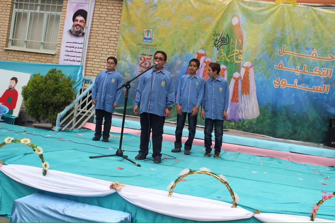 افتتح الحفل بكلمة لمدير المدرسة رحب فيها بالحضور الكريم، ومن ثم فقرة مراسم تعظيم القرآن الكريم وفقرة استعراضية. وكلمة المكلفات اللواتي حملن صور شهداء مدارس المهدي (ع) بعدها ألقت التلميذة فاطمة الشيخ كلمة المكلفات. وقدم أطفال الروضة الثانية نشيد العهد والتحية للامام المهدي (عج).