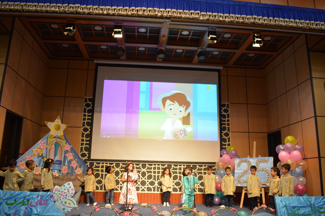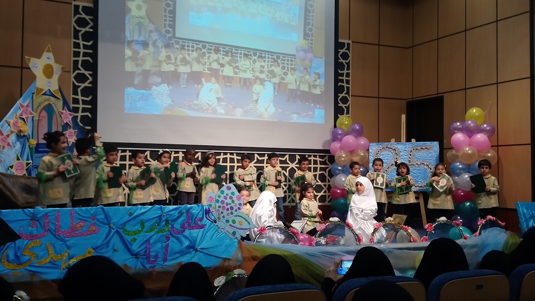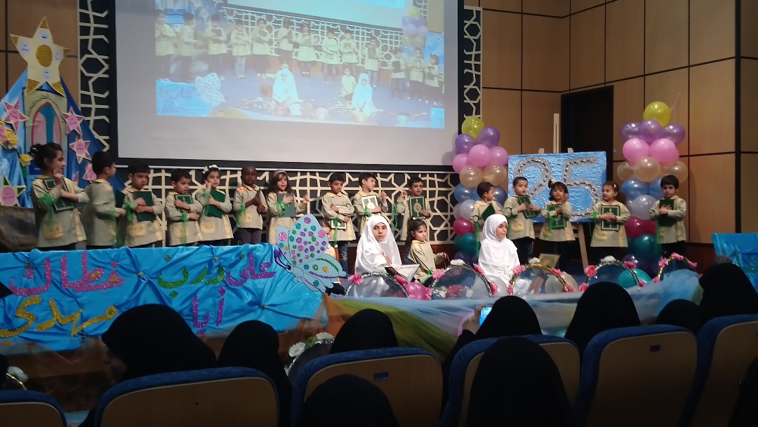 وعيون أطفالنا البريئة تشع عزماً وإرادة وأملاً بمستقبل يفوح منه أريج الانتصارات… في جوّ من الفرح والسرور طوى أطفال الروضات في مدارس المهدي(ع)-قم العام الدرسي 2017-2018 بتقديم مجموعة من الفقرات التمثيلية-الإنشادية حيث تمّ تخريج 97 تلميذاً من الروضة الثالثة. وقد افتتح الاحتفال بمراسم تعظيم القرآن الكريم قدمها أطفال الروضة الثانية أ ومن ثمّ تتالت الفقرات متضمنة نشيد التخرج وكلمة الخريجين واختتم الحفل بتوزيع المدير لشهادات التخرج على الأطفال.