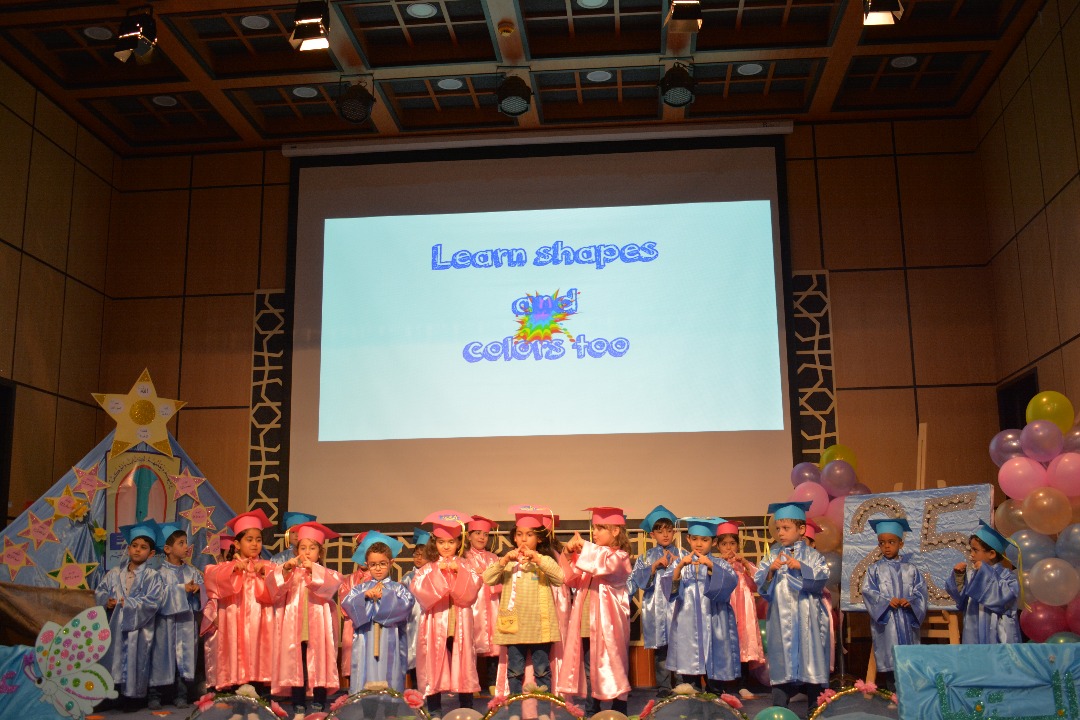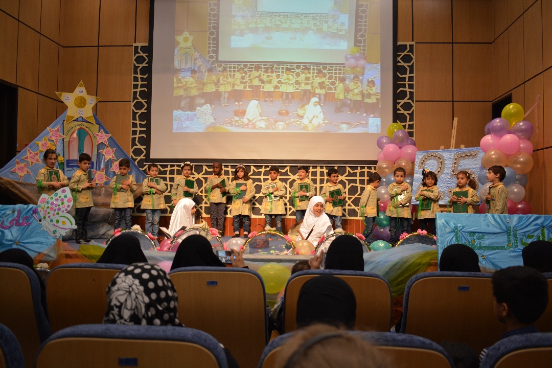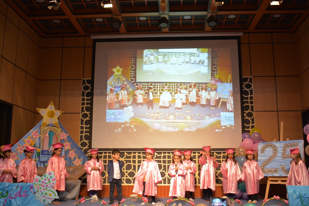 وعيون أطفالنا البريئة تشع عزماً وإرادة وأملاً بمستقبل يفوح منه أريج الانتصارات… في جوّ من الفرح والسرور طوى أطفال الروضات في مدارس المهدي(ع)-قم العام الدرسي 2017-2018 بتقديم مجموعة من الفقرات التمثيلية-الإنشادية حيث تمّ تخريج 97 تلميذاً من الروضة الثالثة. وقد افتتح الاحتفال بمراسم تعظيم القرآن الكريم قدمها أطفال الروضة الثانية أ ومن ثمّ تتالت الفقرات متضمنة نشيد التخرج وكلمة الخريجين واختتم الحفل بتوزيع المدير لشهادات التخرج على الأطفال.