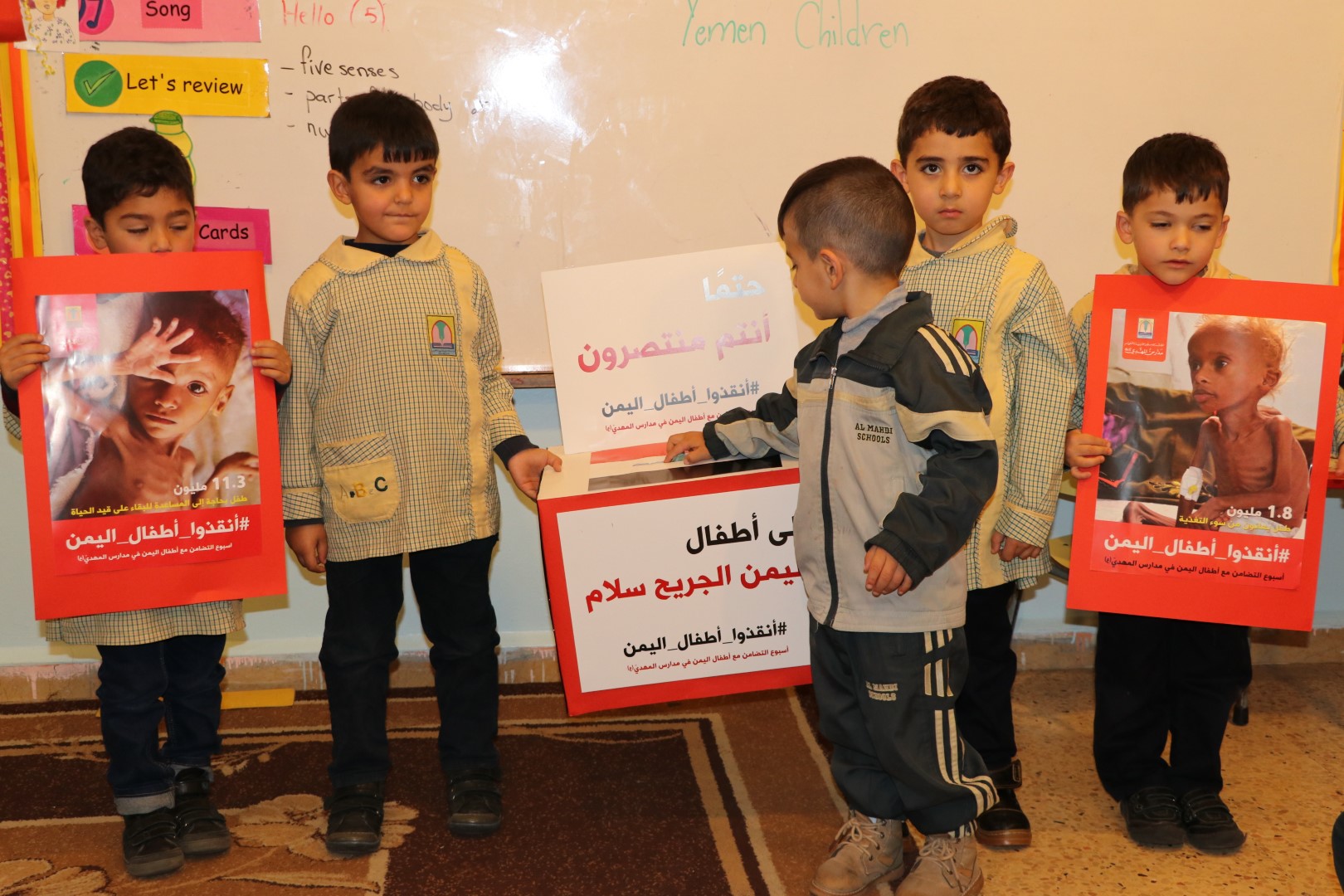 ضمن فعاليات أسبوع التضامن مع أطفال اليمن نظمت مدرسة المهدي(ع)-النبي شيث حملة تبرّعات لجمع الأموال لمساعدة الشعب اليمنيّ بمشاركة التلامذة والمعلّمين وأولياء الأمور. وكان لافتا التفاعل الرائع من قبل التلامذة حيث استغنى الكثير منهم عن مصروفه اليومي في سبيل تقديم المساعدة لأطفال اليمن.