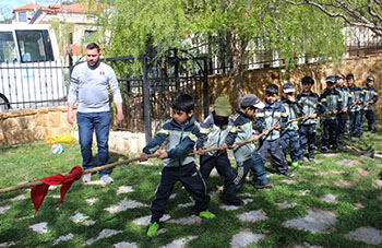 فكانت المحطة الاولى في حديقة الريحان حيث تناول التلامذة طعام الفطور , لتبدأ من بعده العاب التحدي والترفيه من شد الحبل, سباق الركض, خطف العلم وكرة القدم…..