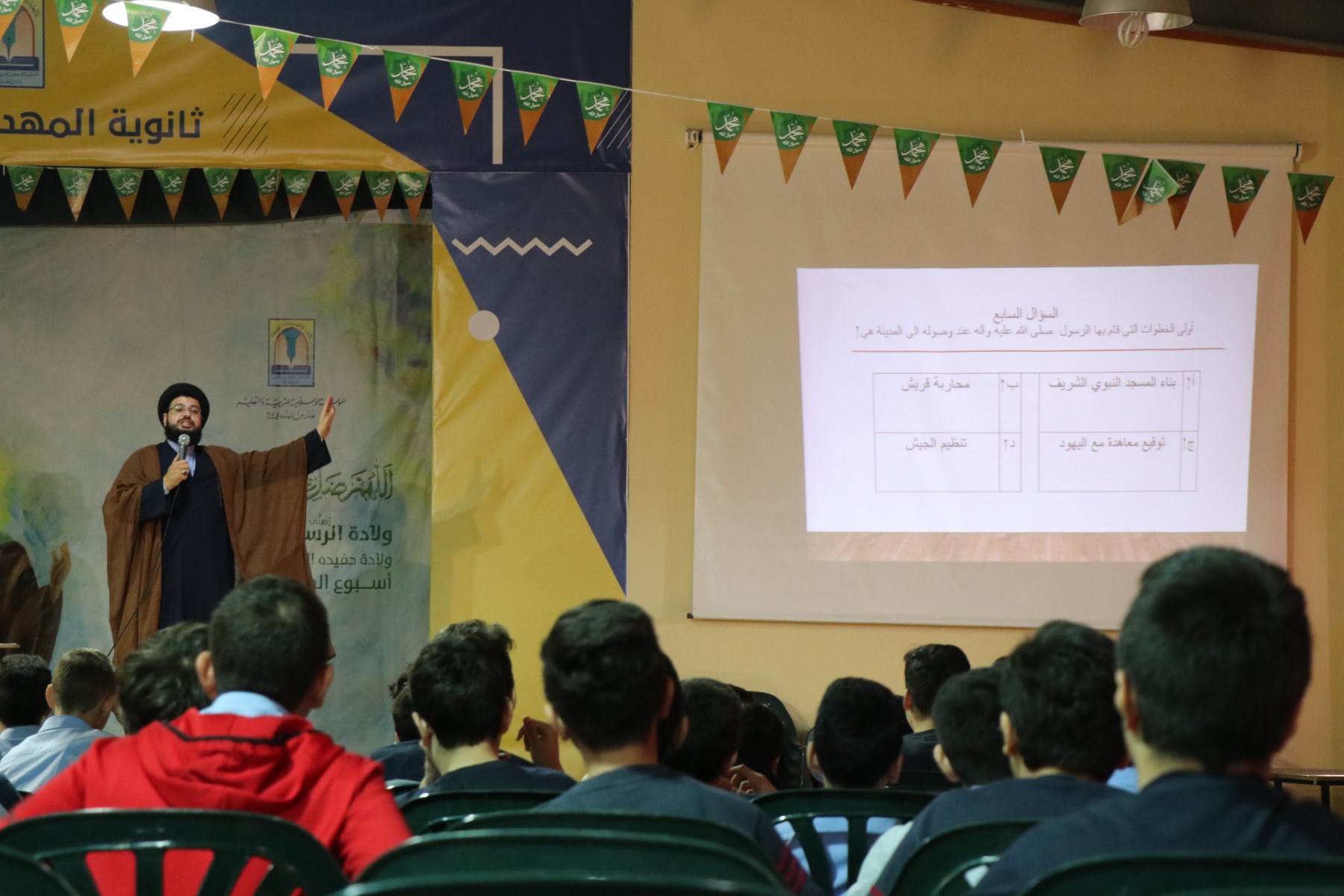 من الولادة المباركة مرورًا بمحطات حياته الشريفة، تنوعت الأسئلة النبوية في الاحتفالات التي نظمتها ثانوية المهدي (ع) الغازية في ذكرى المولد النبوي الشريف لصفوف السابع حتى الاول الثانوي، حيث قدمها الارشاد الديني، بأجواء من التحدي والمنافسة بين التلامذة… متخللاً فيديو من وحي المناسبة وحلوى في نهاية الحفل.