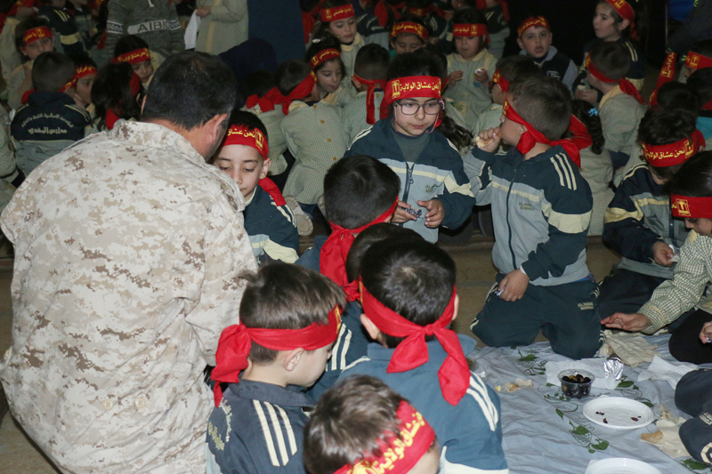 على وقع الأناشيد الحماسية وفي أسبوع المقاومة الإسلامية استضاف تلامذة قسم الروضات في مدرسة المهدي(ع)-النبي شيث عددا من المجاهدين حيث تناولوا معهم طعام الفطور في جو عابق بالأنس والمحبة .