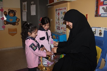 في أجواء عيد المعلم استقبلت مدرسة المهدي (ع) القطراني وفداً من كشافة الامام المهدي (ع) / فوج فاطمة العليلة (ع) القطراني، فجالت البراعم الكشفيّة على المعلمين والمعلمات في المدرسة وقدمنّ لهن الأزهار.