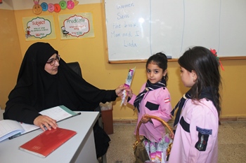 كشافة الامام المهدي (ع) يعايدون المعلمين في مدرسة المهدي (ع) القطراني