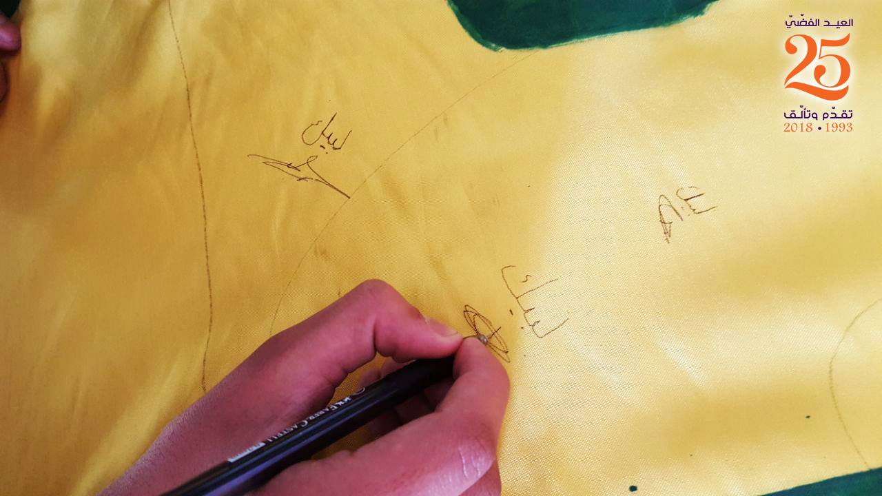 بمناسبة ذكرى ولادة الإمام المهدي(عج) تم رفع راية كبيرة مكتوب عليها يا قائم آل محمد على سطح المدرسة وذلك بعد أن وقع عليها كادر وتلامذة المدرسة بعباراة لبيك مع أسمائهم.