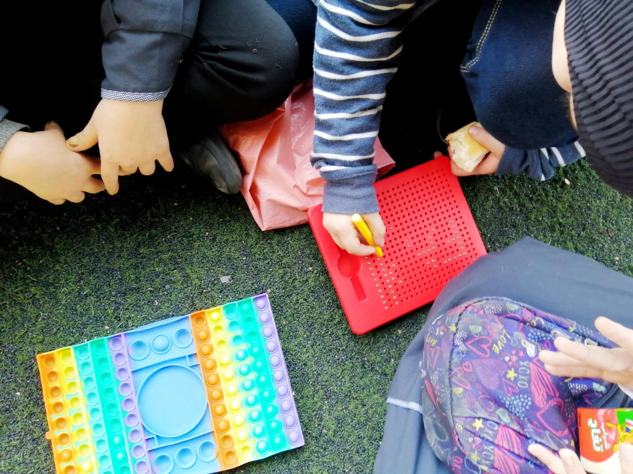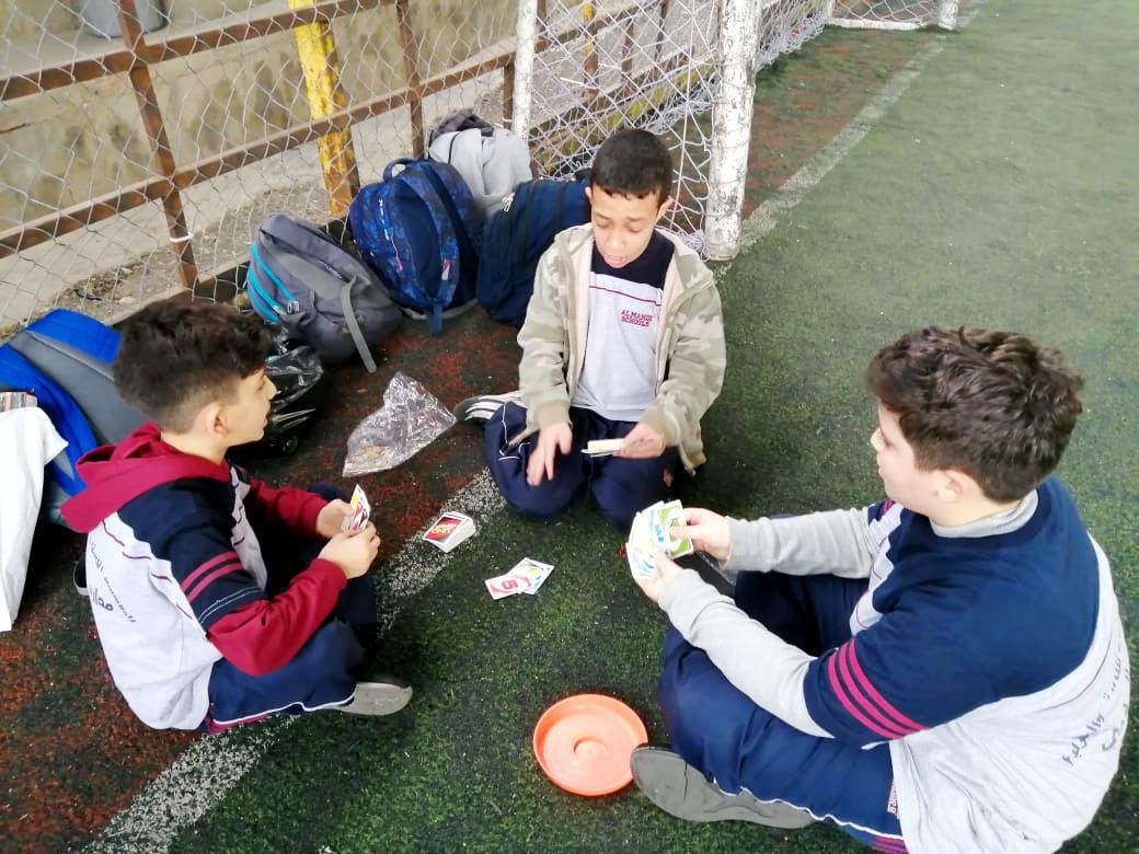 إلى الملاعب انطلقنا.. نشدّ حبلًا ونجمع قطعا.. نتقاذف كرة.. ونطيّر ريشة.. نتنافس…نتسابق…نتشارك.. نرسم الأرض مربعات نقفز فوقها.. تركنا الآلات والشّاشات… ومضينا نحن تلاميذ الصّفّ السّادس أ مع معلّمتنا في حصّة اللّغة العربيّة لمحور الألعاب إلى الملعب نمضي وقتا في جوّ رياضيّ حماسيّ..