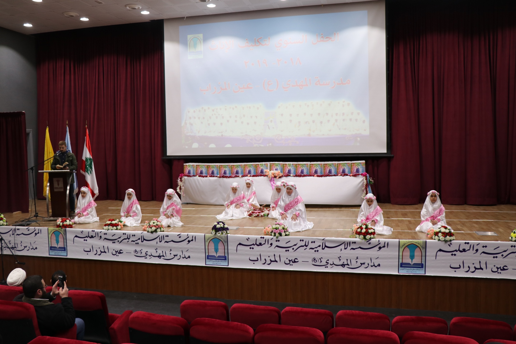 برعاية وحضور المسؤول الثقافيّ لحزب الله في المنطقة الأولى الشيخ شوقي خاتون، وفي أجواء ولادة السيّدة الزهراء(ع)، احتفلت مدارس المهديّ (ع)-عين المزراب بتكليف أكثر من 40 فتاة بلغن سنّ التكليف الشرعيّ، وذلك في مسرح بلديّة تبنين، بحضور فعّاليّات دينيّة وتربويّة وبلديّة واختياريّة وأولياء أمور المكلّفات.