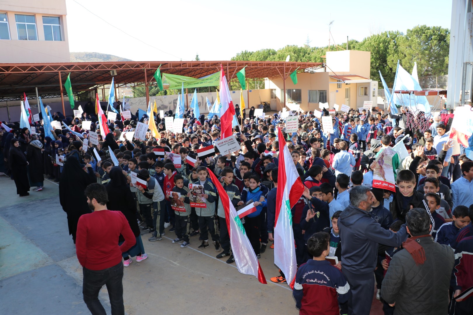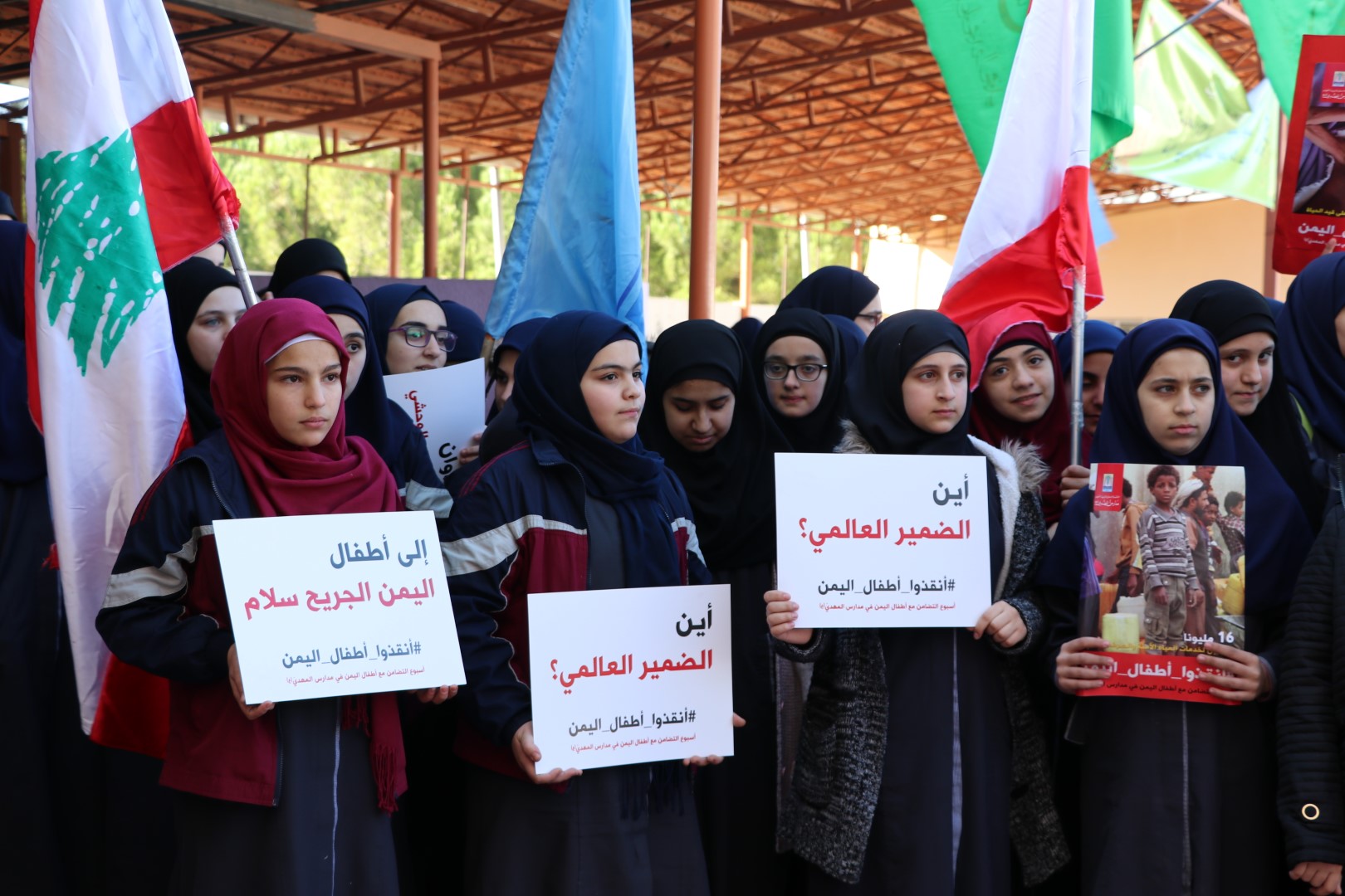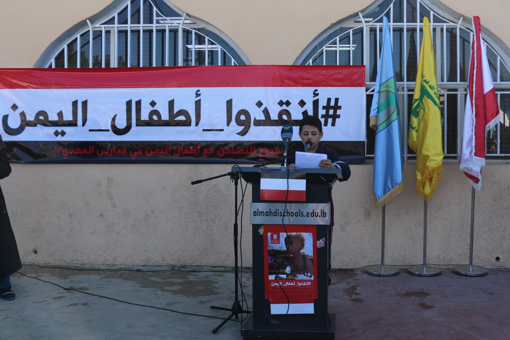 ضمن فعّاليّات أسبوع التضامن مع اليمن، أقامت مدرسة المهديّ (ع) – النبيّ شيث وقفة تضامنيّة مع أطفال اليمن، بحضور عضو كتلة الوفاء للمقاومة سعادة النائب الحاجّ أنور جمعة، ومدير المدرسة السيّد عليّ الموسويّ، والكادر الإداريّ والتعليميّ وما يزيد عن 700 تلميذ، وعدد من أولياء الأمور.