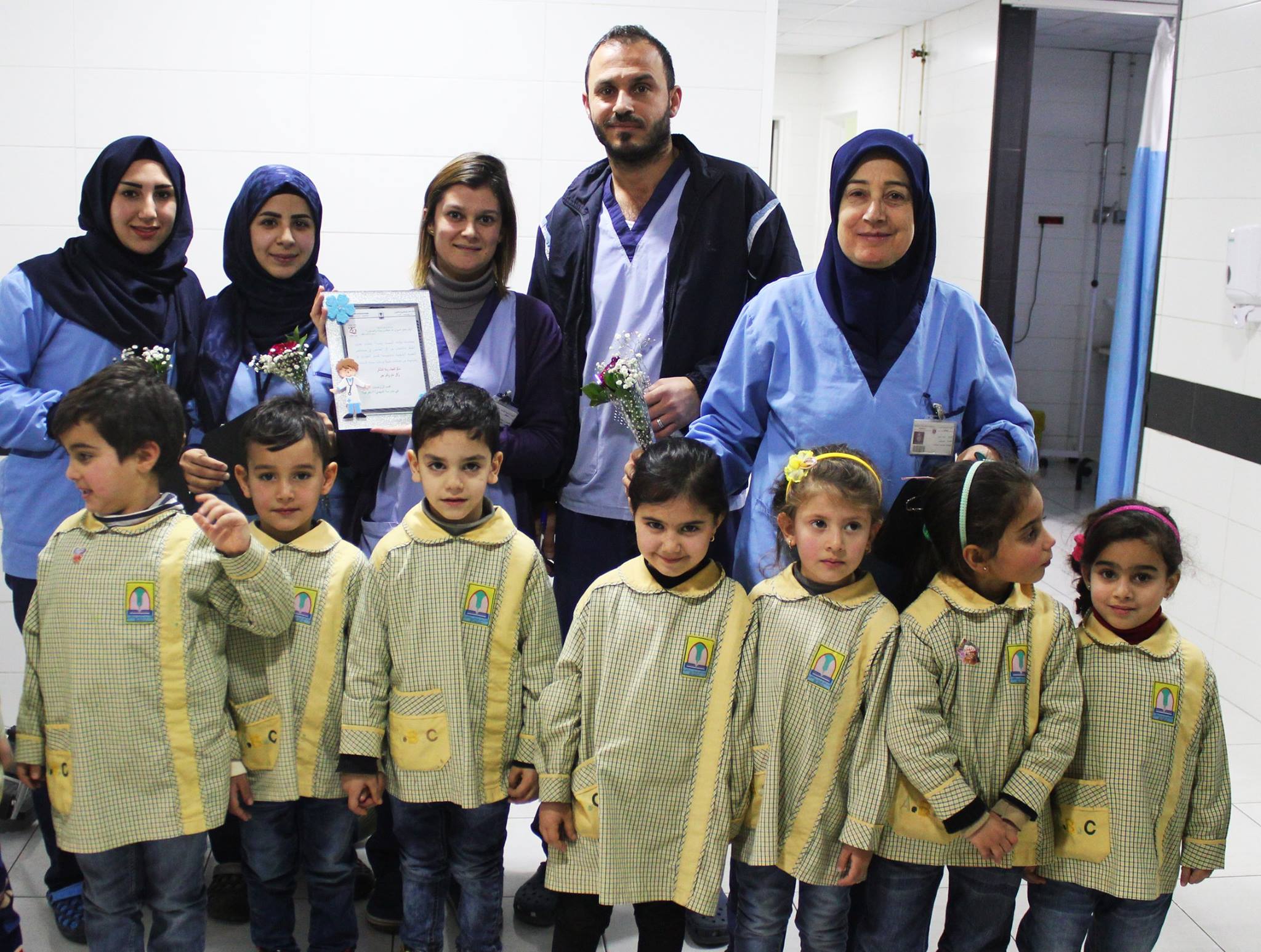 كما قدم الأطفال رسالة شكر وهدية رمزيّة لمدير المستشفى الذي استقبلهم بحفاوة ولطف مميّز.