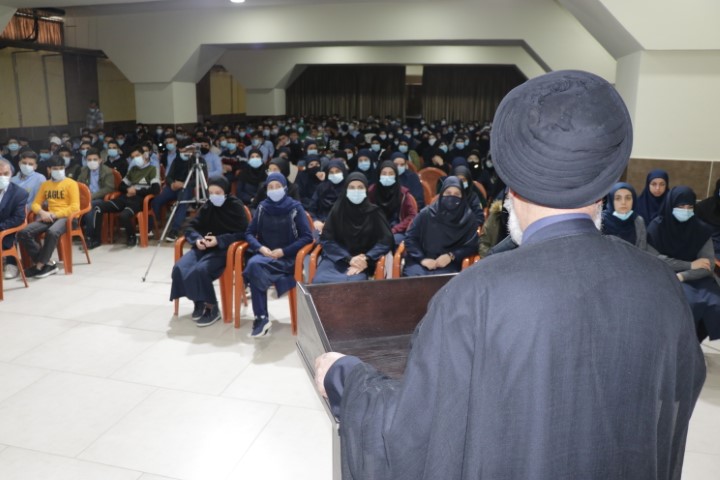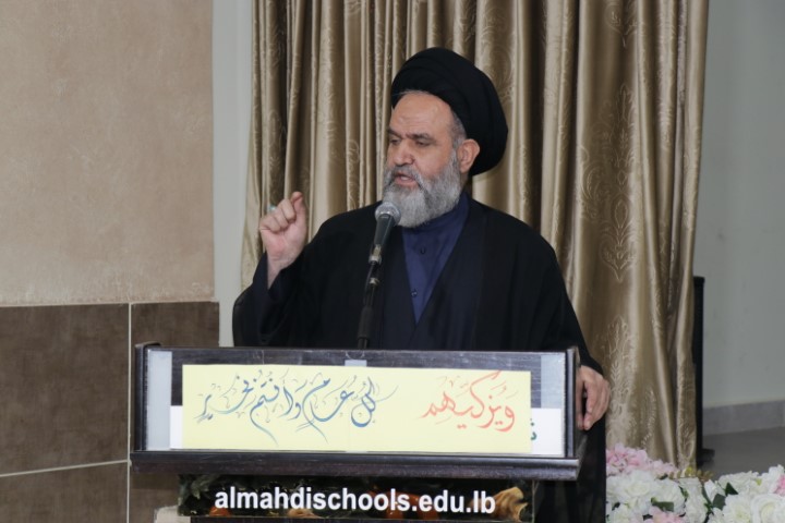 الله سبحانه وتعالى أرسل نبي الله محمد ص ليكون شاهدا على الأمم شاهدا على الكتب السماوية وعلى المدارس العقائدية وعلى كل منحرف أني قد بلغت عن الله سبحانه وأعطيت كل جهدي وجهادي وحياتي ووجودي كي تستقيم هذه الأمم وتسير في منهاج الله ورسوله والأئمة الهداة ,كان هدفه نشر القيم والمعالم الحقة والمثل والخلق الصالح الى الأمم والأفراد والأسر,إنما تحيا هذه الأمم بأخلاقها وقيمها ومثلها : "إنما الأمم الأخلاق ما بقيت فإن هم ذهبت أخلاقهم ذهبوا." الله سبحانه وتعالى قدّمه نموذجًا فخاطبه في كتابه الكريم وإنك لعلى خلق عظيم . والنبي ص قال : إنما بعثت لأتمم مكارم الأخلاق فالأخلاق هي الأساس في بناء الشّخصية في بناء الرّوح إذ لا وجود لمن لا خلق له ولا حياة لمن لا خلق له .ودعا المتعلمين للإقتداء برسول الله قولا وعملا والتعامل مع الظروف الحياتية القاسية التي نعيشها كما كان رسول الله يواجهها بالصبر والبصيرة