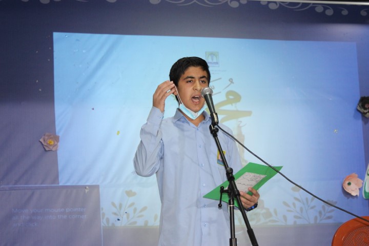 حيث تحدث خلال الحفل متوجّها للثانوية وأسرتها وتلامذتها بالتبريك والمعايدة بالولادة الميمونة وقد تخلّل الحفل تلاوة عطرة من القرآن الكريم، وقصيدة للتّلميذ علي الهادي شريف ومدائح نبوية واختتم بزيارة مختصرة للرسول من أداء التلميذ أحمد شرف الدين .