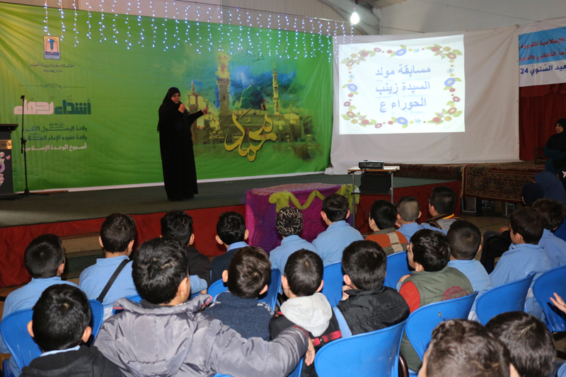 لمناسبة مولد عقيلة الهاشميين السيدة زينب(ع) أقامت مدرسة المهدي(ع)-النبي شيث سلسلة احتفالات لتلامذة الحلقات الثلاث حيث تعرف التلامذة على شخصية السيدة زينب(ع) من خلال عرض نبذة عن حياتها كما ألقى عدد منهم قصائد من وحي المناسبة وتم إجراء مسابقة تفاعلية كذلك كانت كلمة للمرشد الديني وفي الختام سلم المرشد الديني هدايا لـ 13 تلميذة من الحلقة الأولى يحملون إسم زينب وحوراء ووزعت الضيافة على الجميع .