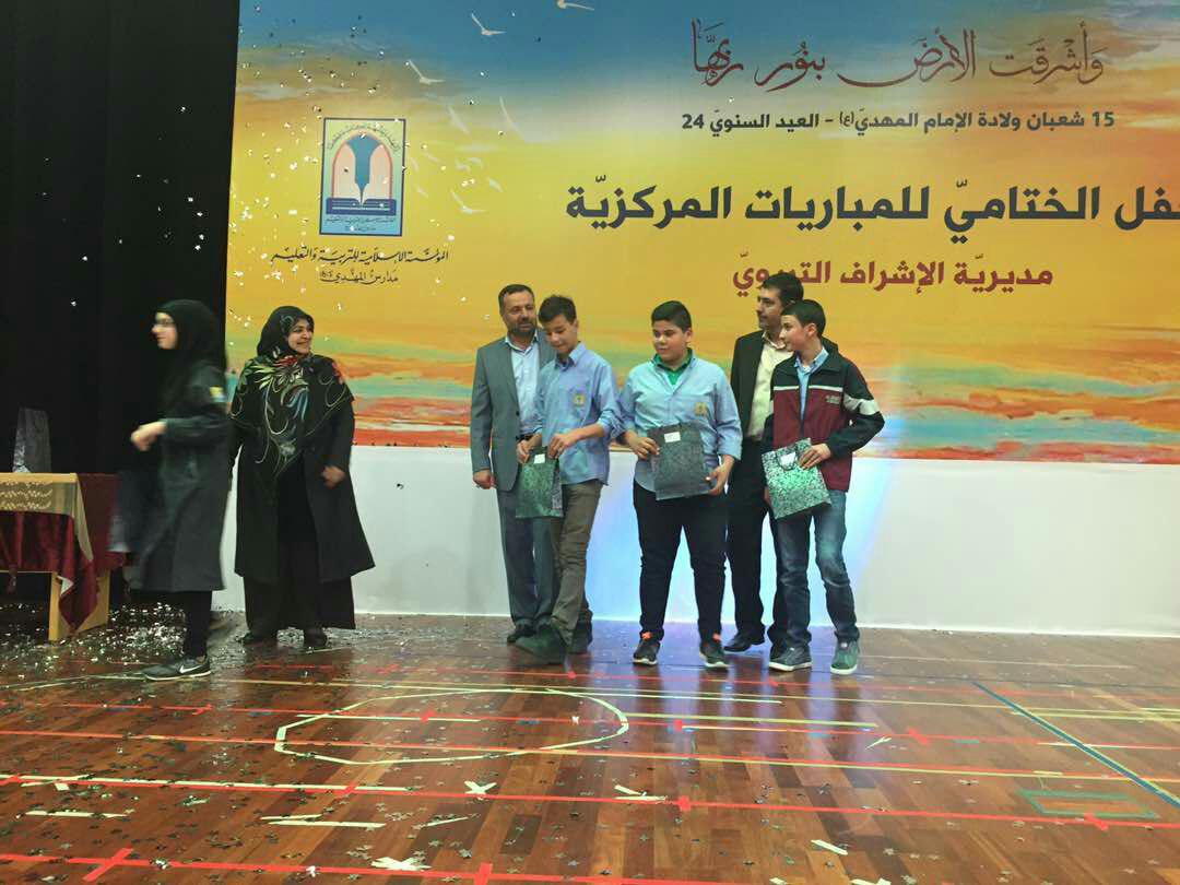 والتلاميذ علي جشي، محمد عليان، حسن سلمان، وسارة حمادي المرتبة الثالثة في إعداد ريبورتاج عن الصلاة.