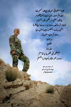 المشاركة هنا سليماني.. يحيك فصص شموخه.. بقلم التلميذة نور عباس عبدالله، من الصف التاسع الأساسي بمناسبة ذكرى السنوية الثاثلة لشهادة الحاج قاسم سليماني مساحة التلامذةمساحة التلامذة - الشرقية