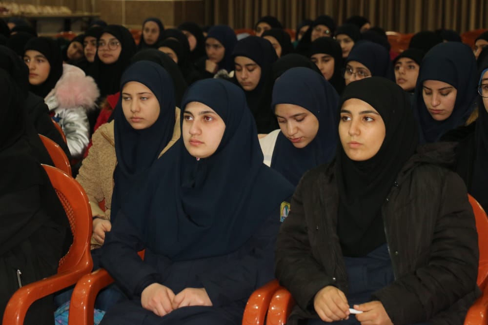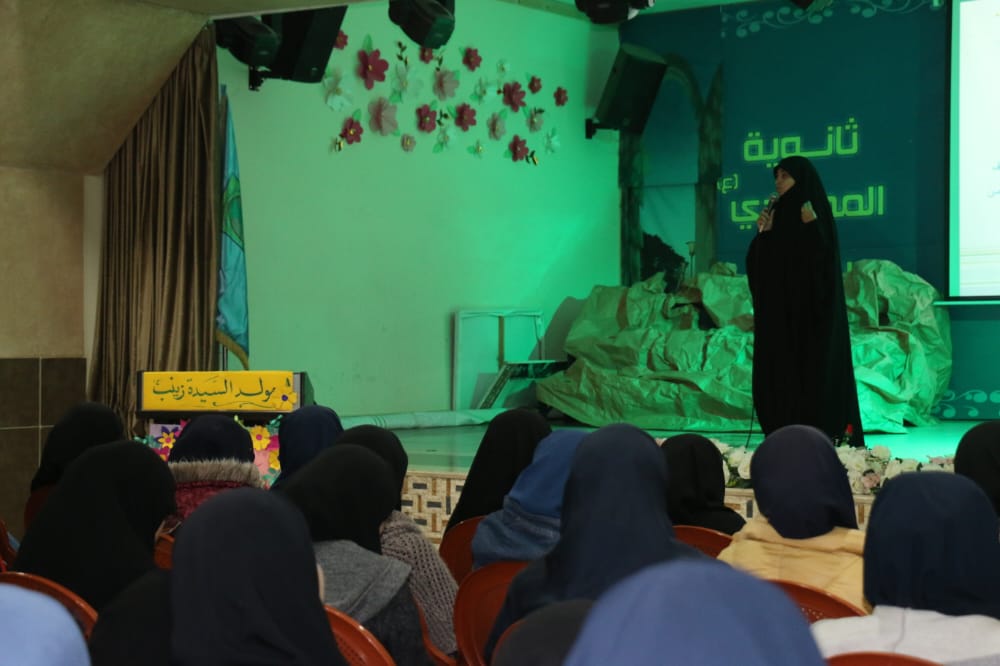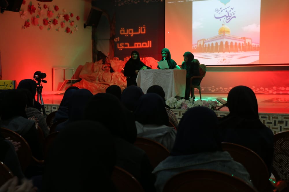 ثم وزعت الطالبتان حوراء العطار وحوراء قصاص هدية السيدة زينب للفتيات، تلاها عهد وقسم للمضي على خطى مولاتنا العقيلة واختتم بمولد من وحي المناسبة.