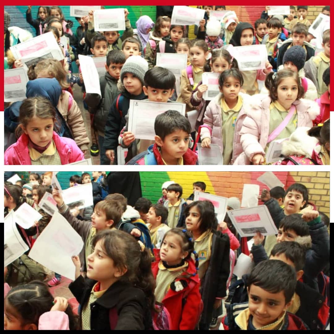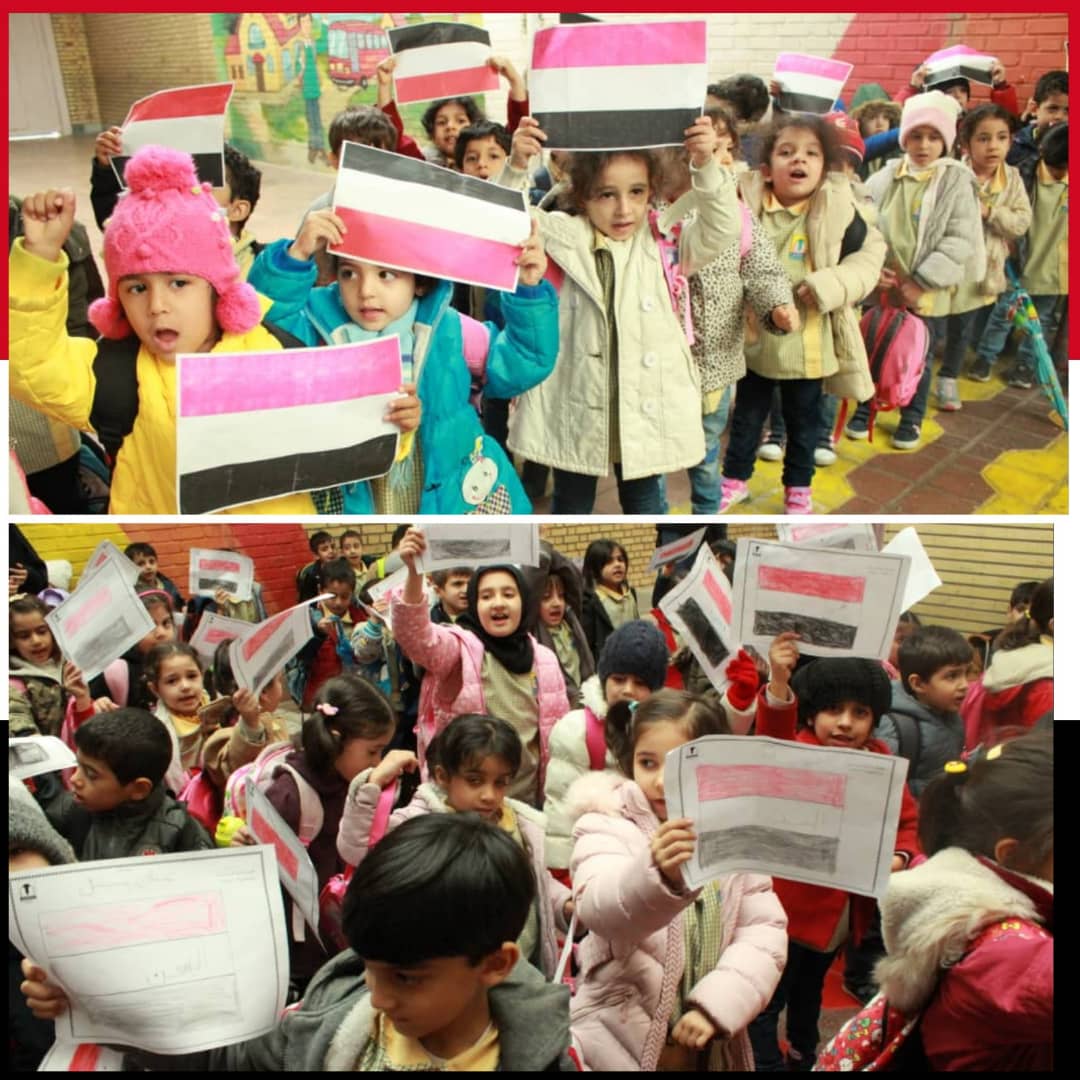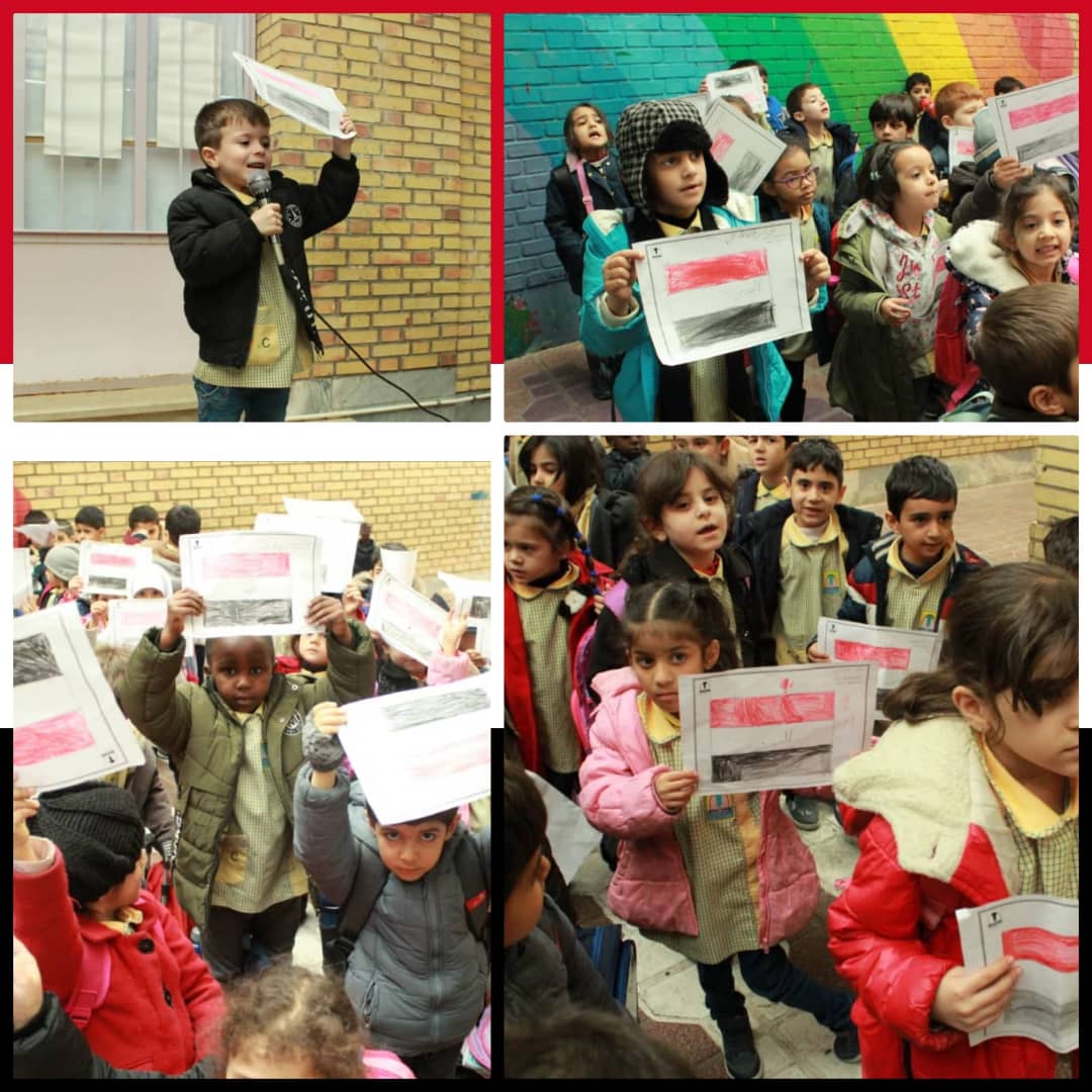 ضمن فعاليات أسبوع التضامن مع أطفال اليمن الذي أطلقته المؤسسة الاسلامية للتربية والتعليم وقف أطفال الروضات في مدارس المهدي(ع)- قم وقفة تضامنية مع أطفال اليمن داخل ملعب الروضات، حيث حملوا أعلام اليمن التي كانوا قد لونوها سابقا ورددوا شعارات تندد بالقوى الظالمة ، كما قرؤوا سورة الفاتحة على أرواح شهداء اليمن الطاهرة.