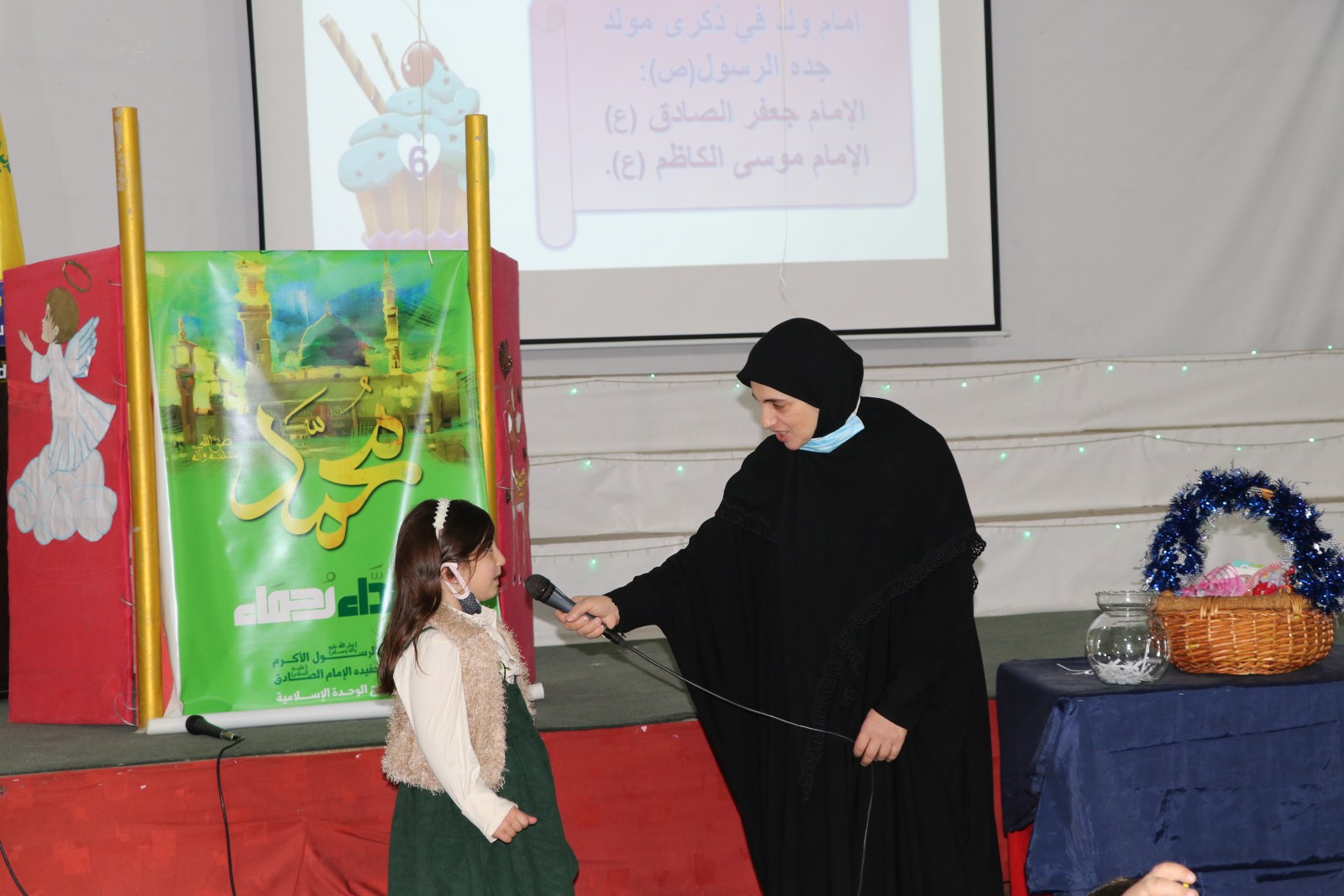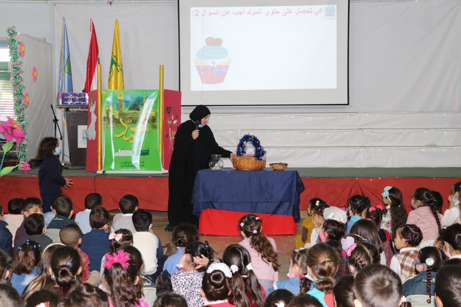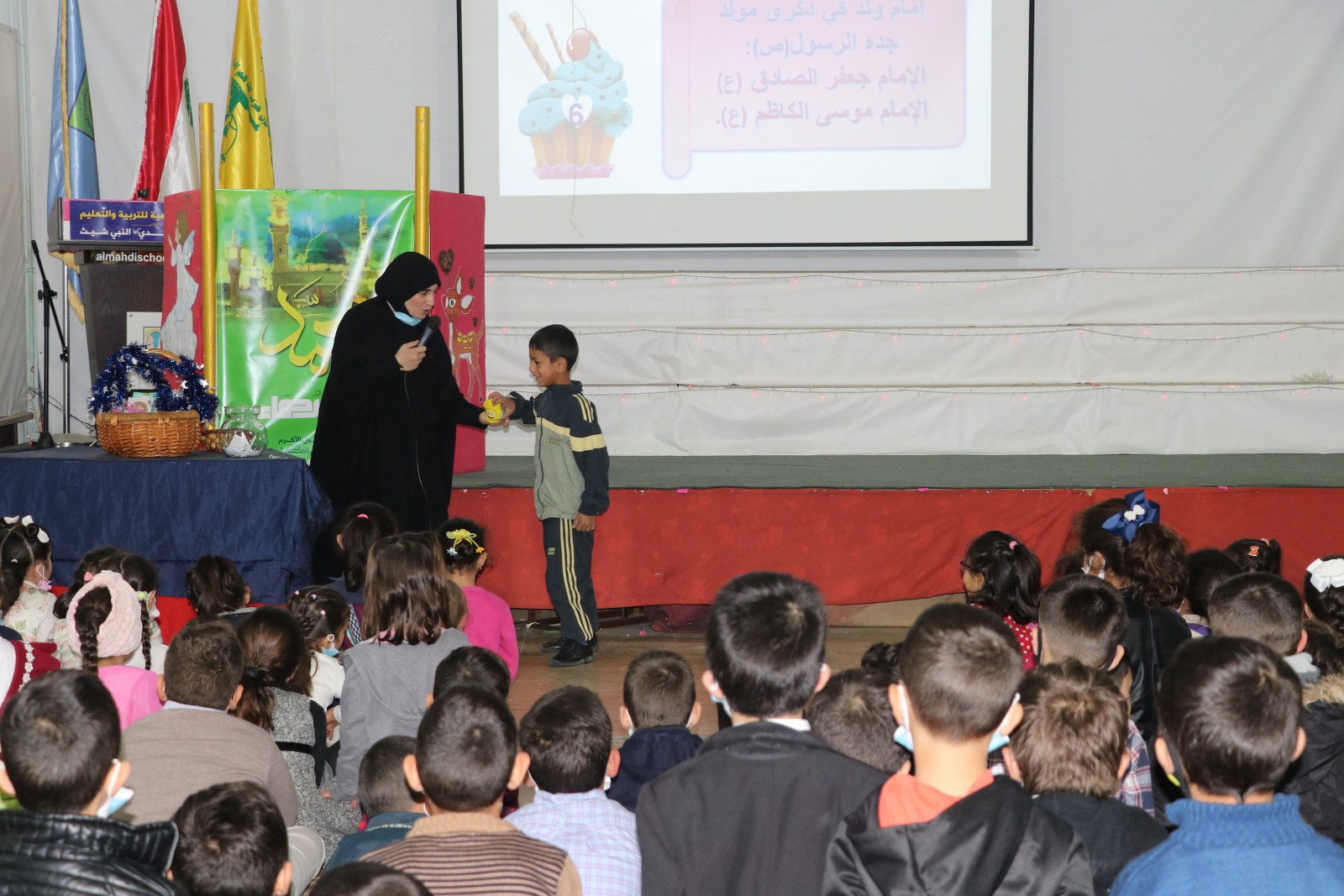 لمناسبة ولادة الرسول الأكرم محمد(ص) وحفيده الإمام الصادق(ع) أقامت مدرسة المهدي(ع)-النبي شيث قسم الحلقة الأولى احتفالاً لتلامذة الحلقة حيث تضمن الحفل قصة للحكواتي ومسابقة تفاعلية تعرف التلامذة من خلالها التلامذة على سيرة نبي الرحمة محمد(ص) كما وأنشدوا الأناشيد الخاصة بالمناسبة واختتم الحفل بتوزيع السكاكر على الجميع.