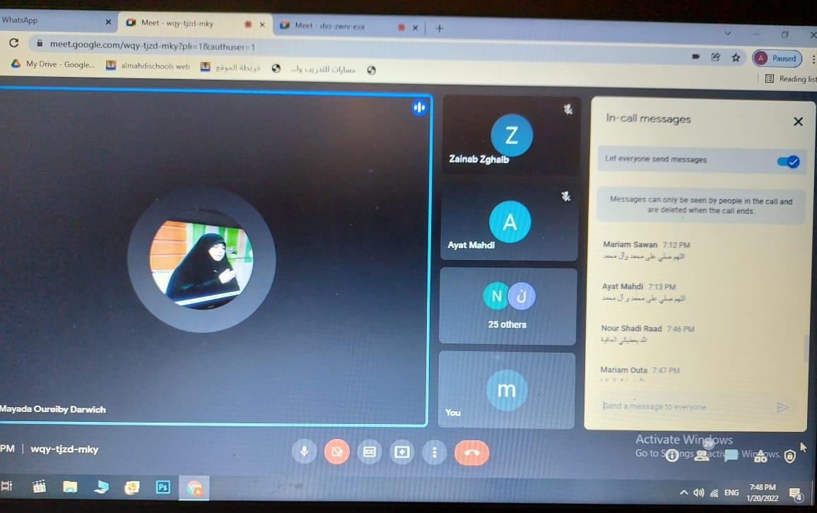 بالتنسيق مع إدارة الحلقتين الثالثة والرّابعة وفي أجواء الولادة الميمونة للسّيدة فاطمة الزّهراء (ع) أقامت ثانوية المهدي (ع) بعلبك لقاءً ثقافياًّ للفتيات عبر تطبيق google meet