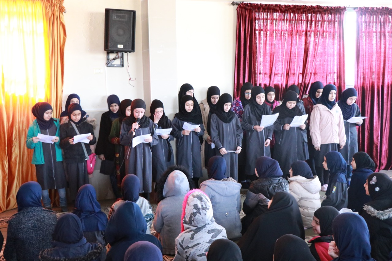 جمعنا قلوبنا و حناجرنا ورفعنا اﻷكف. ومن عيوننا، حانت التفاتة نثرت عبير الشوق والحب لذكری مولدك العظيم. هذا يوم مولد السيدة الزهراء (ع) في الحلقة الثانية في مدارس المهدي (ع) -المجادل.
