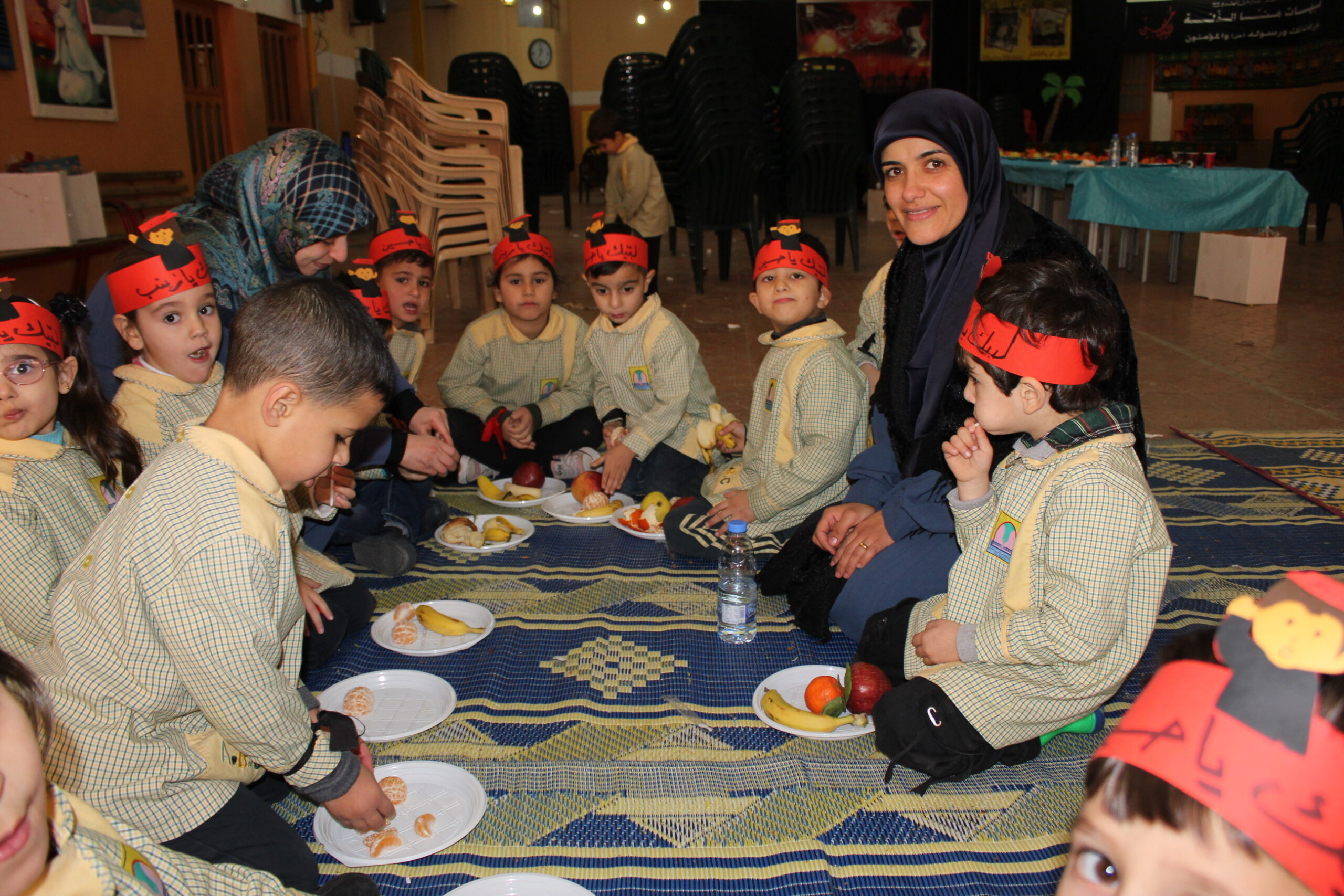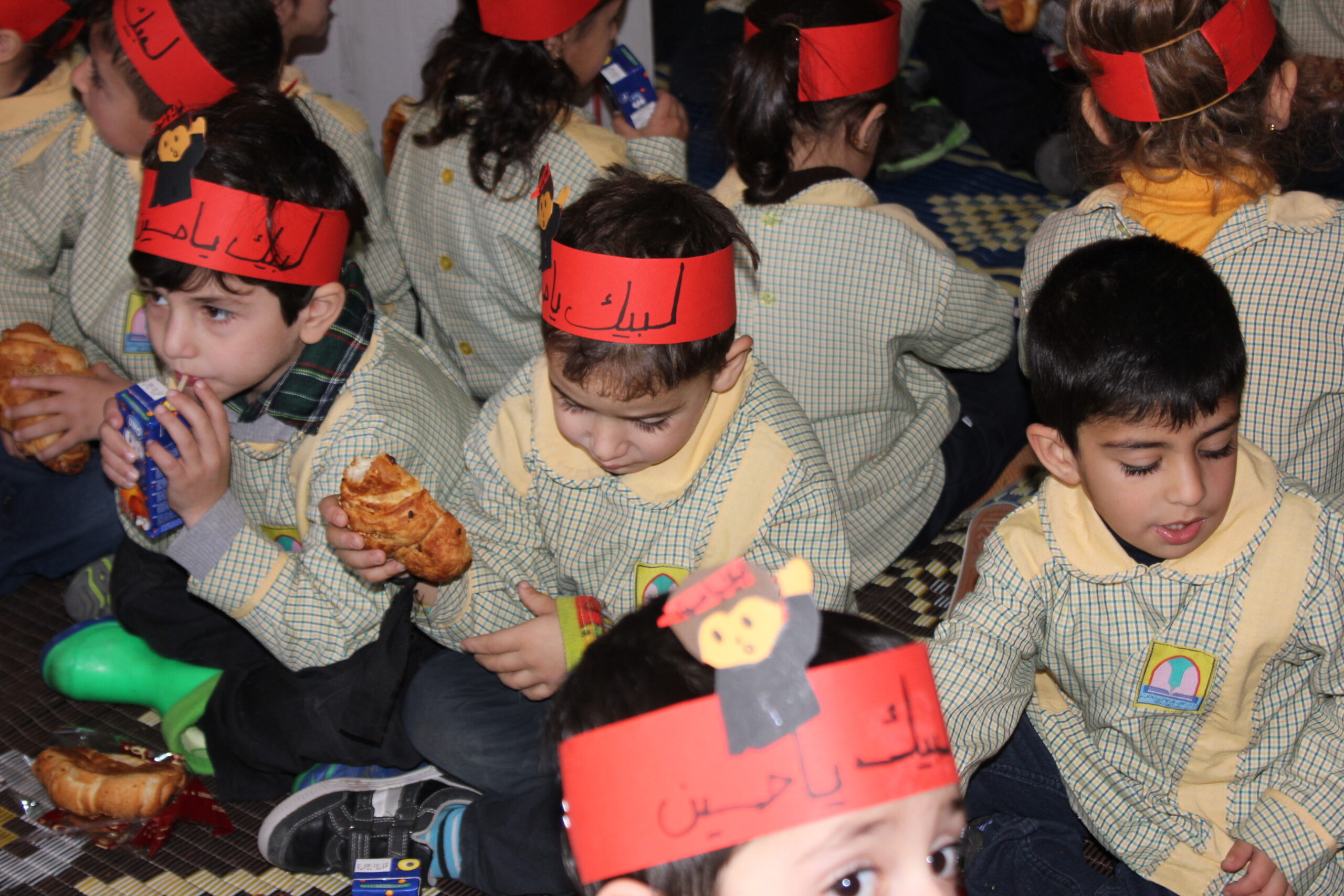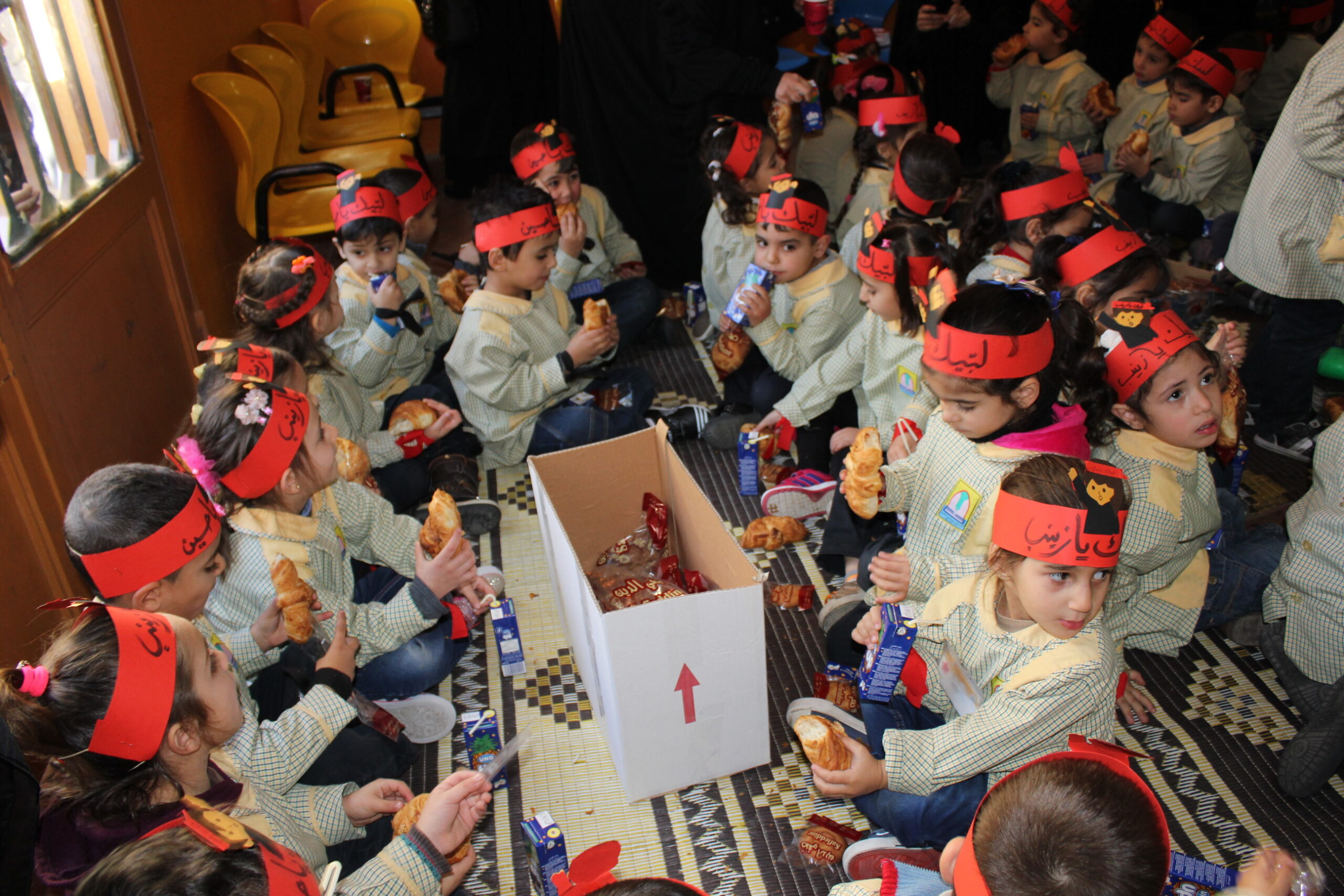 في أجواء أربعينية الإمام الحسين عليه أفضل السلام أقامت مدرسة المهدي(ع) المجادل قسم الروضات نشاط وليمة أم البنين(ع) للبراعم، بحضور أولياء الأمور الذين شاركوا أولادها مائدة أم البنين وتقاسموا الطعام على حب الحسين (ع) وآل بيته الأطهار.