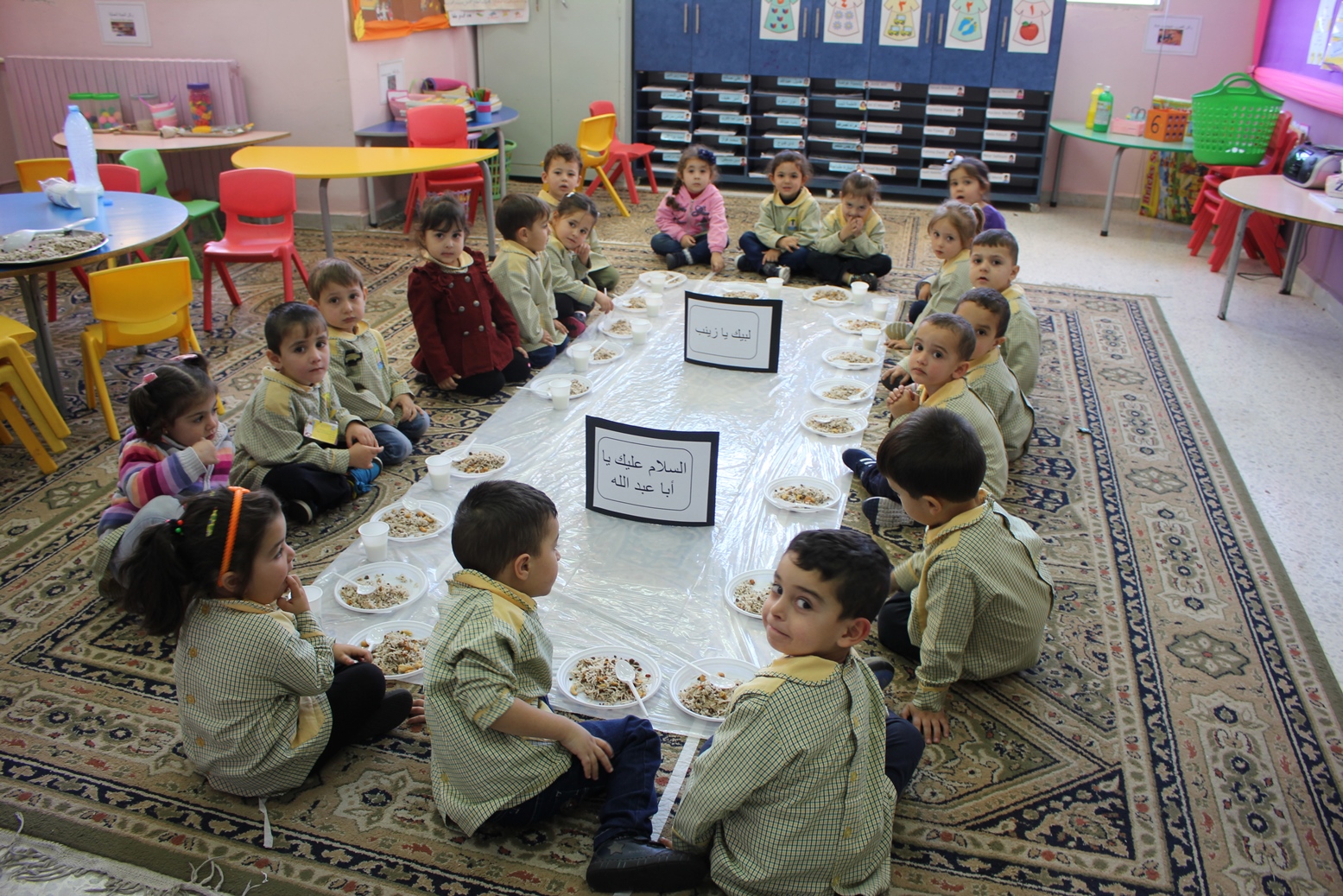 مواساة للسيدة الزهراء (ع) وعلى حب الامام الحسين (ع) وفي اجواء الأربعين، اقامت مدارس المهدي (ع) عين المزراب وليمة الامام الحسين (ع) لتلامذة الروضات، وبعد الوليمة صدحت حناجر الاطفال بالصرخات الحسينية ولطموا الصدور وهتفوا لبيك يا حسين في مجلس لطم اقيم في قسم الروضات.
